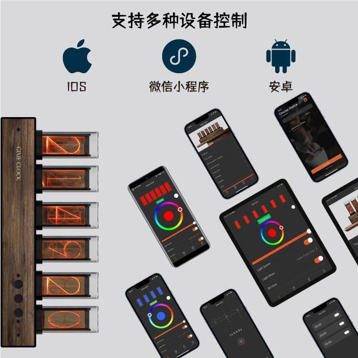 📚 辉光管时钟 RGB 拟辉光钟 实木简约现代 创意时钟 男生礼物 Gixie
