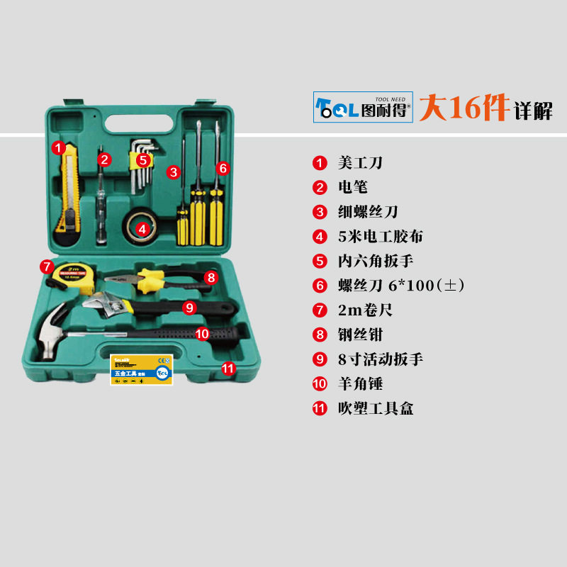 📚 五金维修工具箱16件套装应急工具箱家车两用型车险公司礼品