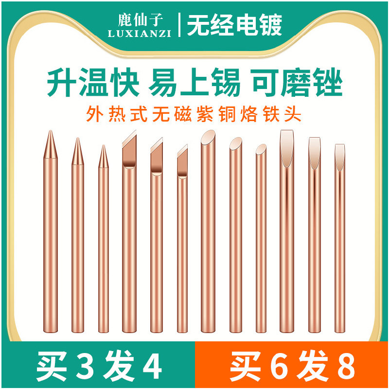 📚 鹿仙子外热式烙铁头锡焊纯铜洛铁头电烙铁发热芯铬铁头紫铜尖头