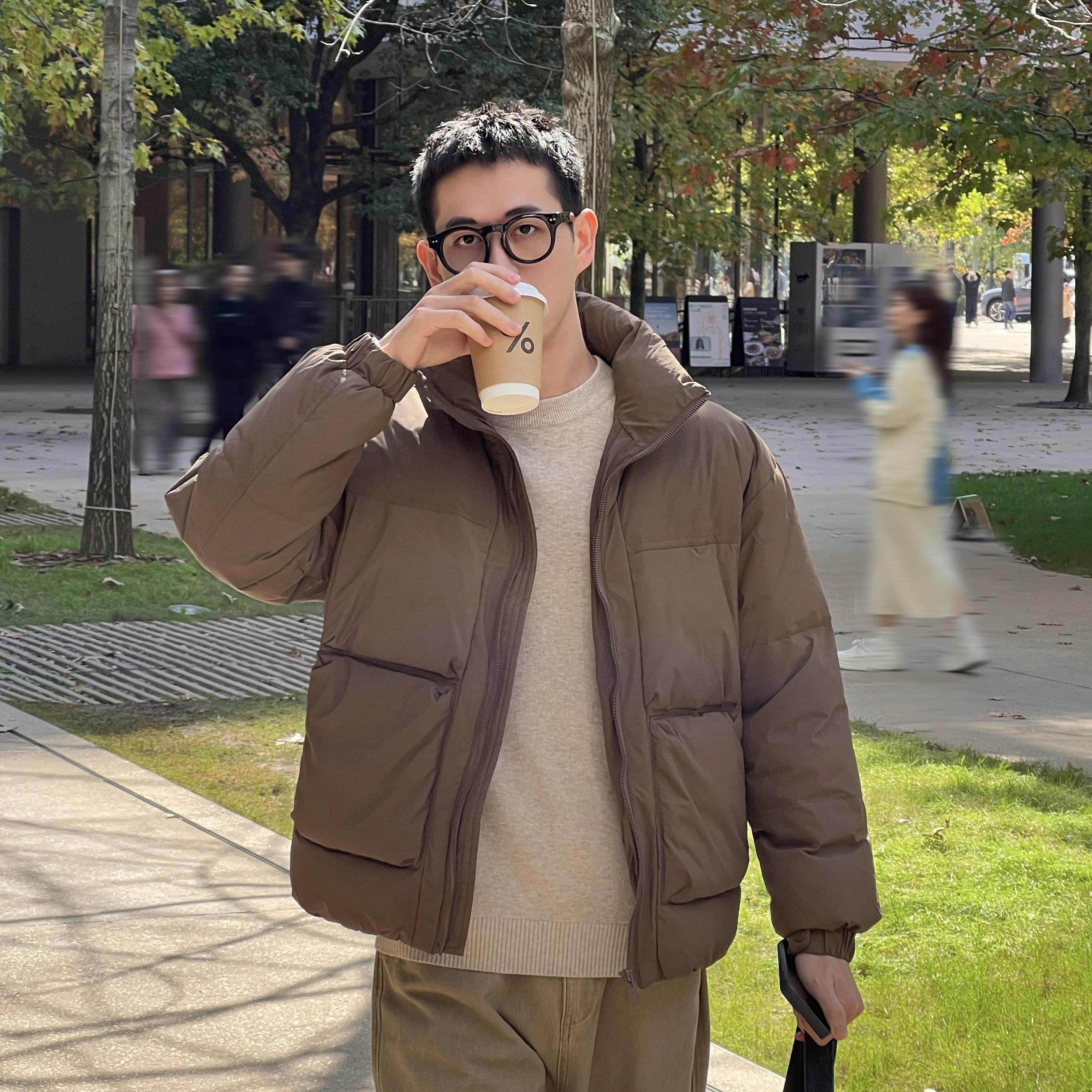 📚 Nick Tian 秋冬新款80白鸭绒咖色羽绒服男休闲保暖无帽立领外套