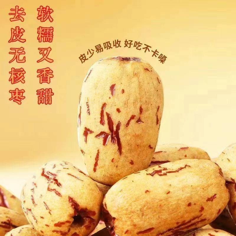 📚 新疆去皮无核免洗若羌去核虎皮饱满灰枣无皮即食红枣煮粥零食煲汤
