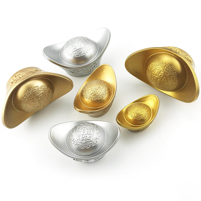 📚 仿真金元宝招财摆件塑料黄金锭子道具儿童玩具空心元宝家居装饰品