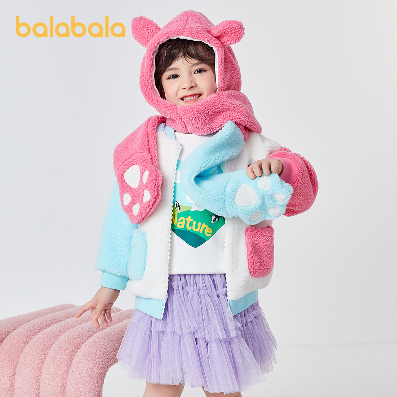 📚 巴拉巴童装女童外套儿童夹克秋冬新款小童宝宝男宝带帽造型潮