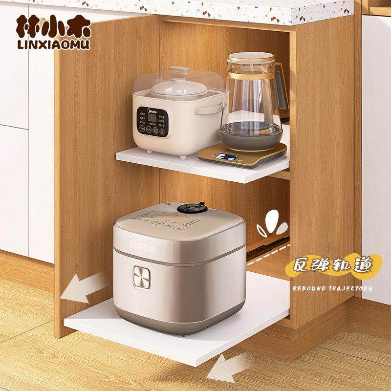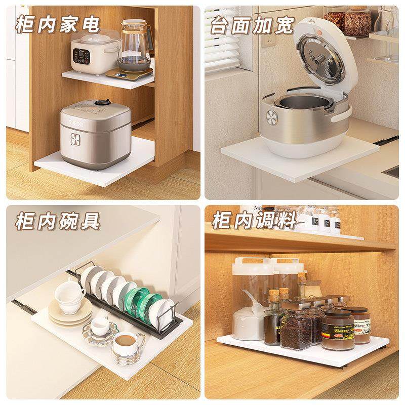 📚 电饭煲抽拉板厨房台面抽拉式托盘微波炉置物架柜内收纳可抽拉碗架
