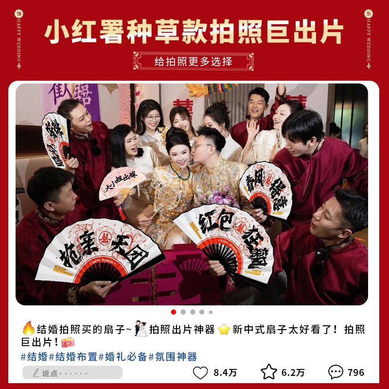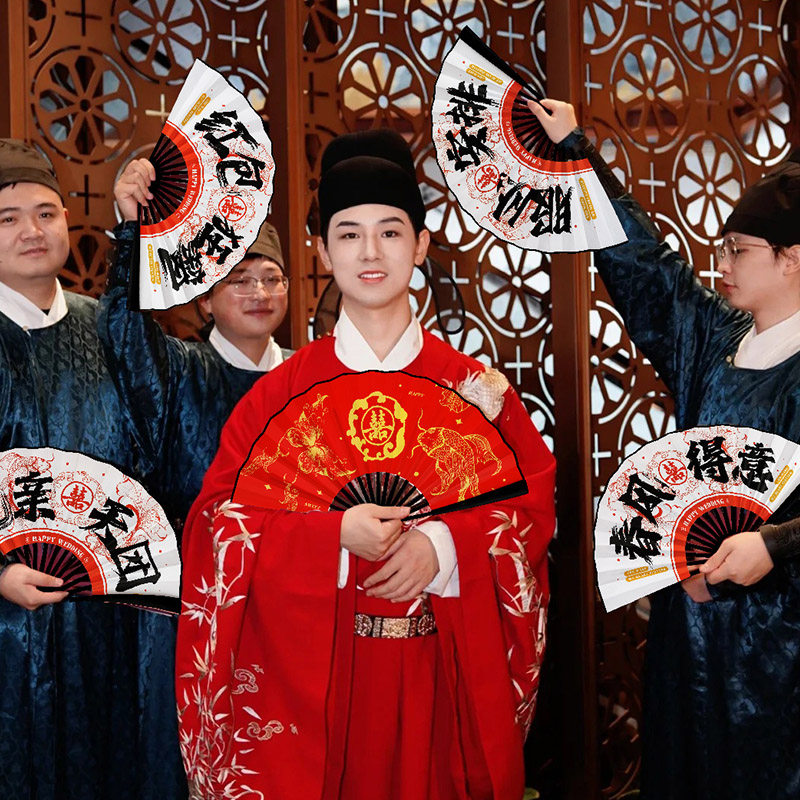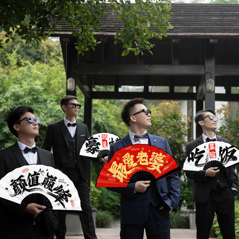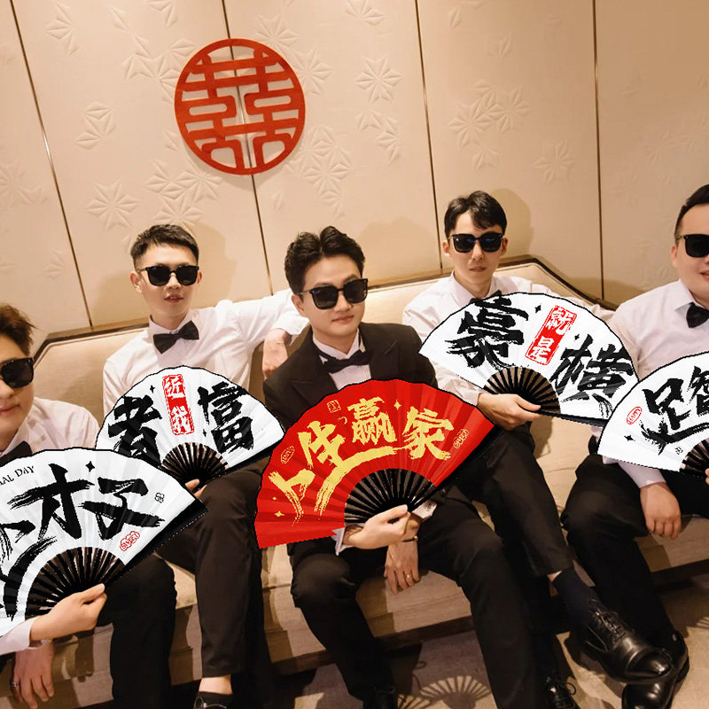 📚 结婚国潮喜扇兄弟团中式迎亲新郎伴郎团折扇婚礼接亲游戏拍照道具