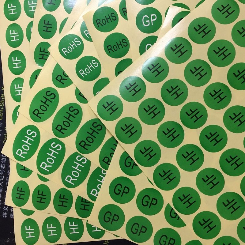 📚 现货自粘椭圆ROHS2.0标签贴纸圆形HF外箱标志HSF合格铜板支持定制