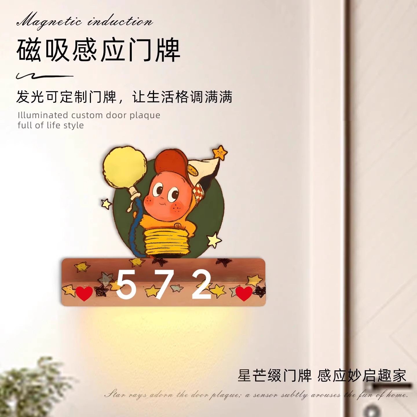 📚 发光门牌家用磁吸星星人入户高级感轻奢简约风卡通感应门口数字号码牌门贴会议门牌装饰欢迎回家仪式感定制