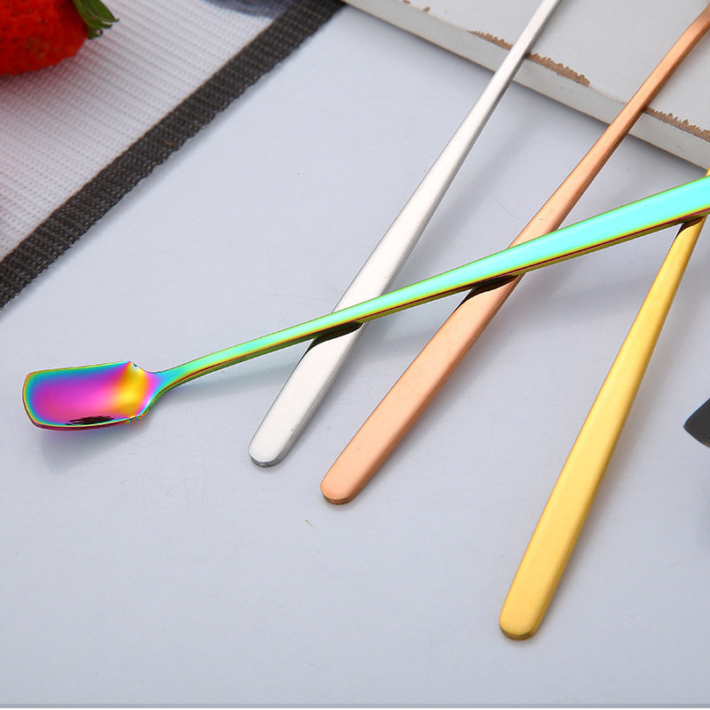 📚 创意咖啡勺SUS304不锈钢长柄搅拌棒勺子渡黑金色短柄方头小勺子