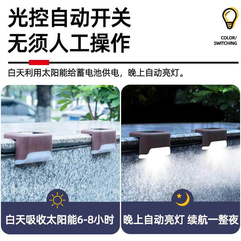 📚 太阳能户外灯庭院灯花园围墙栏杆装饰布置家用防水楼梯脚踏台阶灯