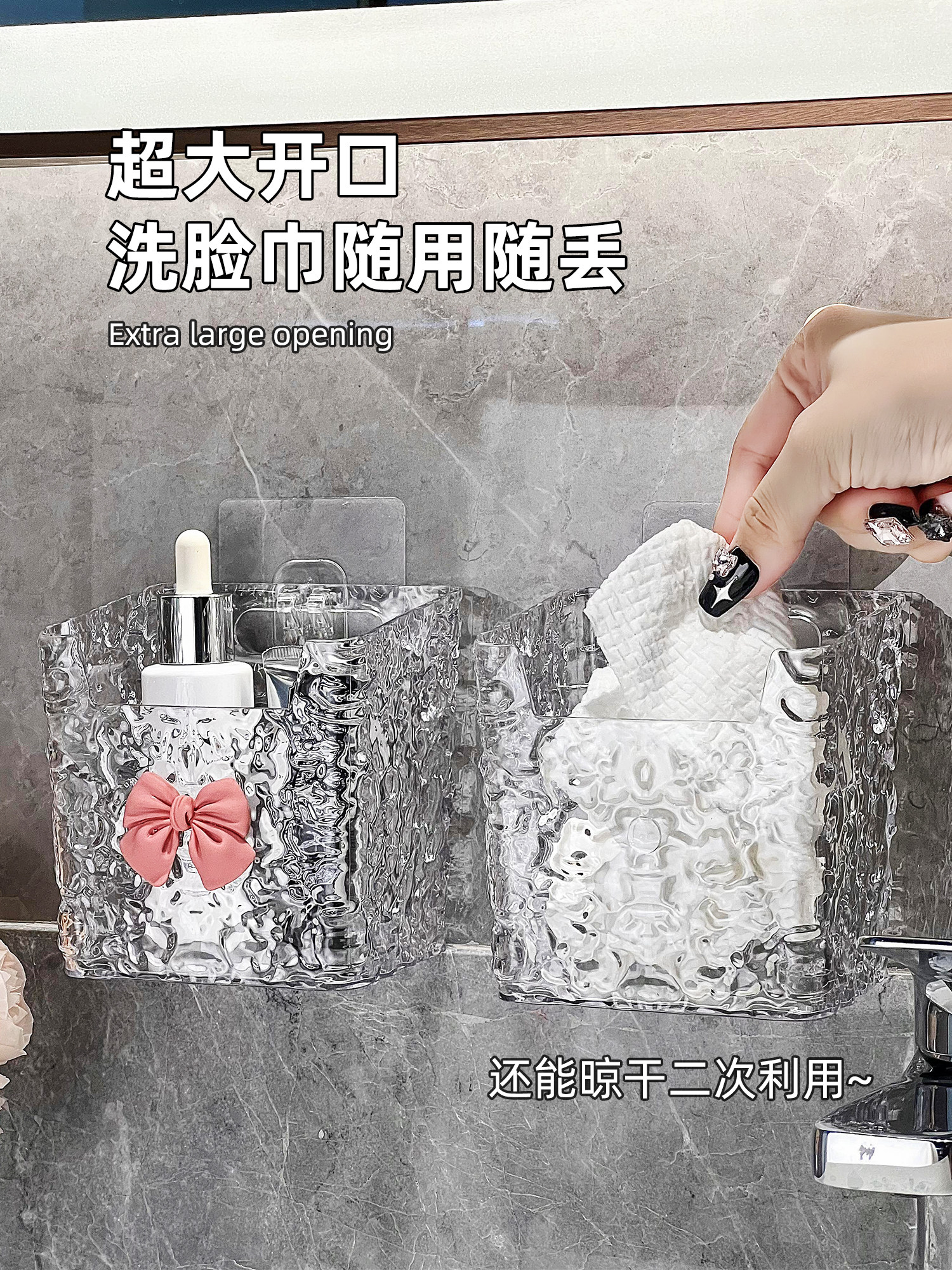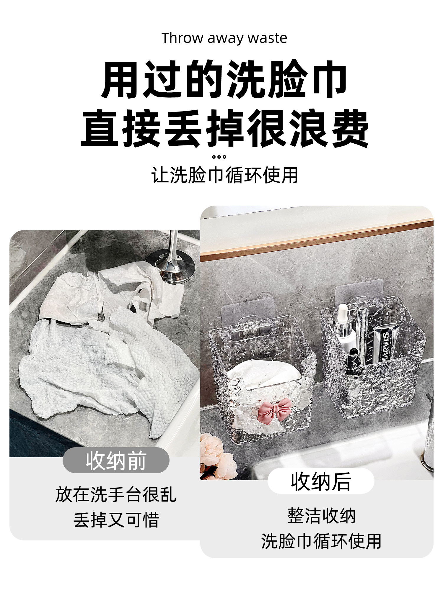 📚 懒地废弃洗脸巾收纳盒壁挂式浴室洗漱台棉柔巾面巾纸卫生间置物架