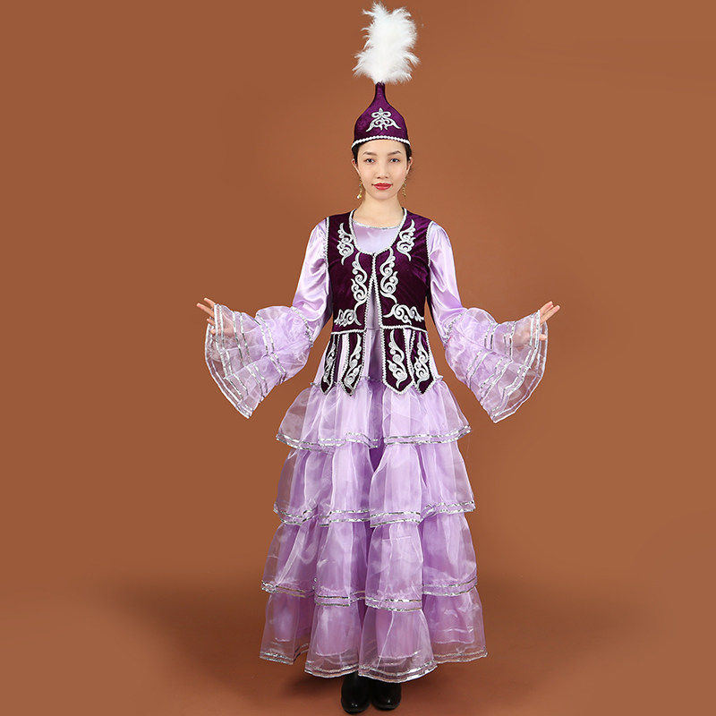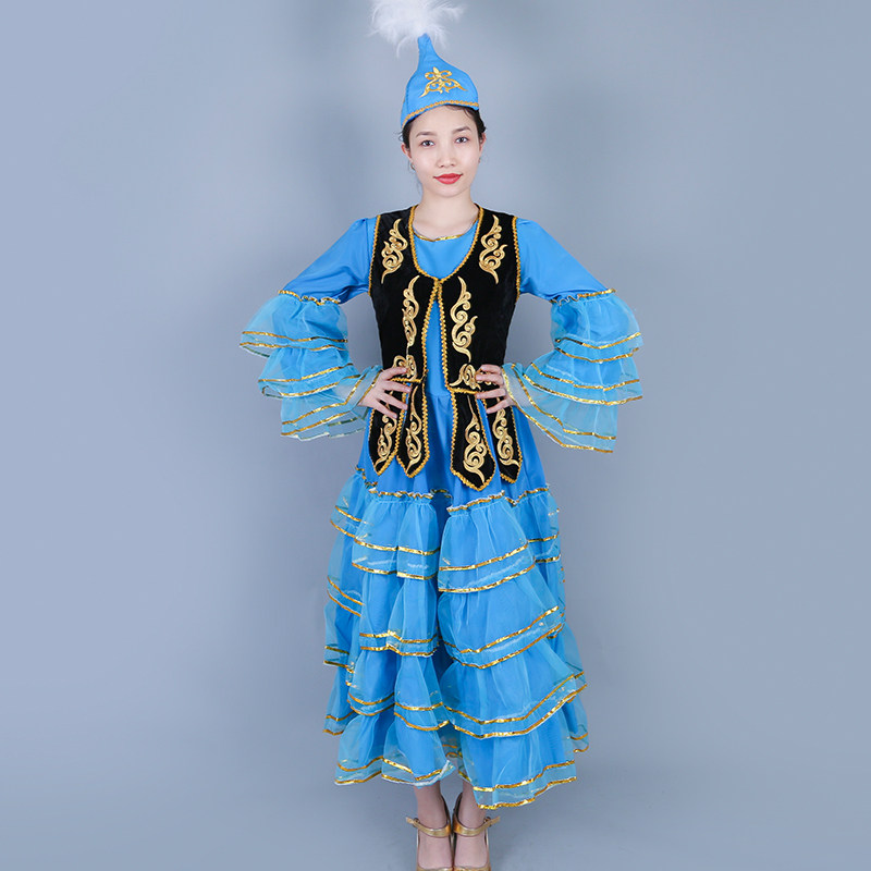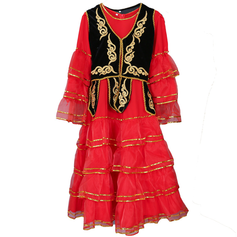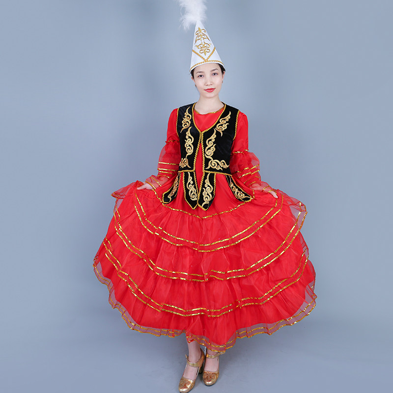 📚 2025新款新疆民族风情舞蹈服装哈萨克族女红色两件套套装表演服装