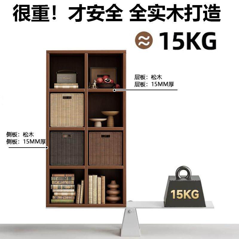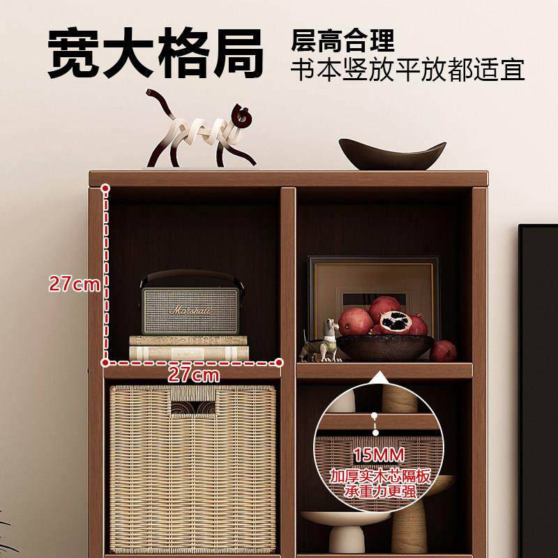 📚 实木格子柜客厅落地置物架卡莱克飘窗柜中古风书架边柜幼儿园书柜