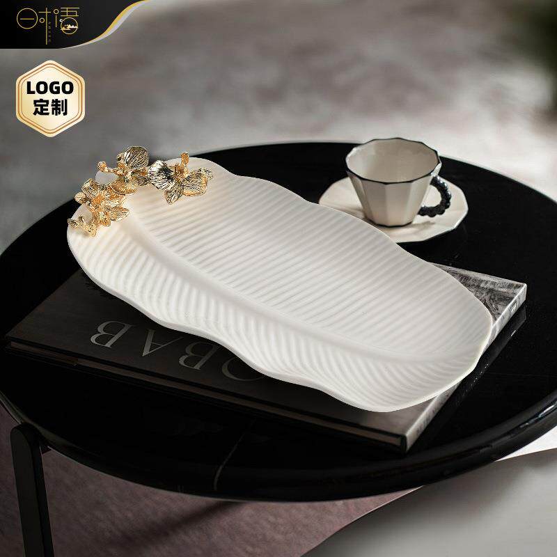 📚 陶瓷纯白长条形盘芭蕉叶盘鱼盘陶瓷盘子酒店摆盘家用寿司盘点心盘
