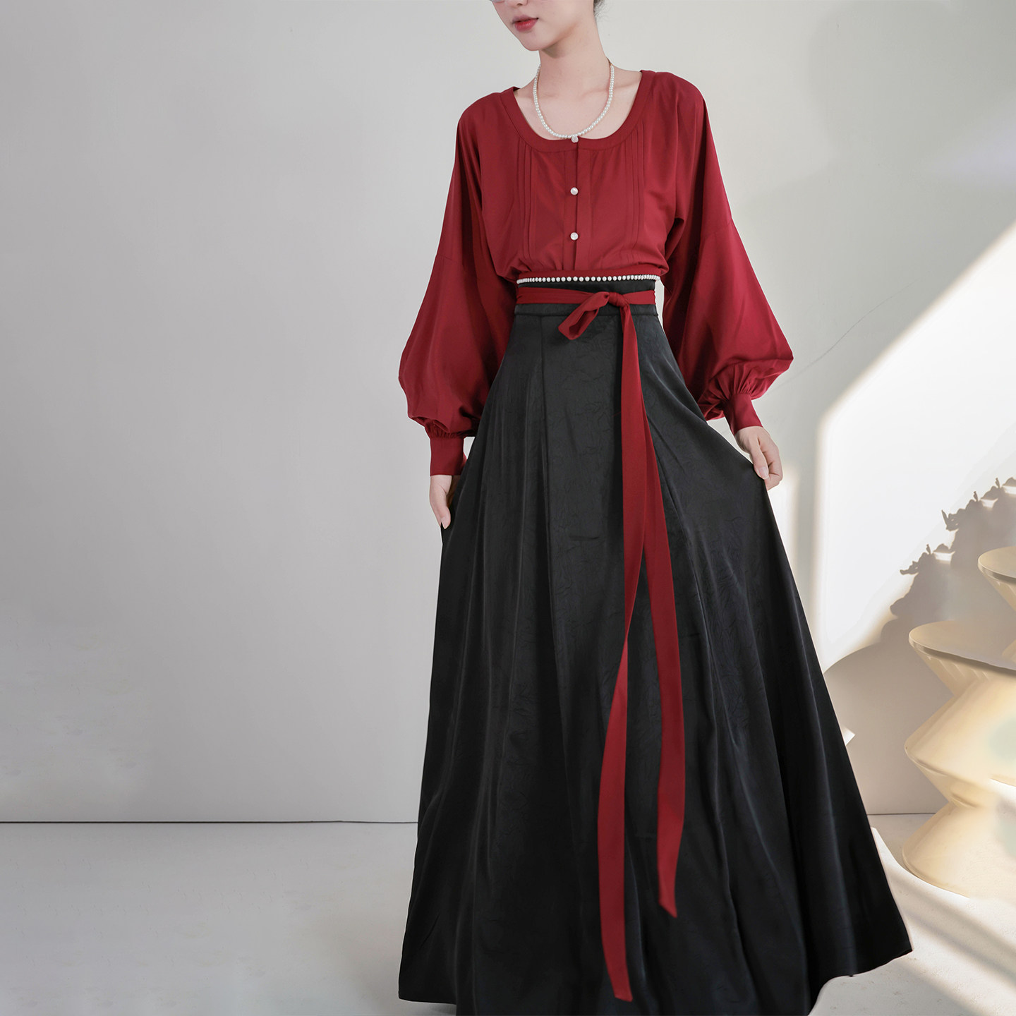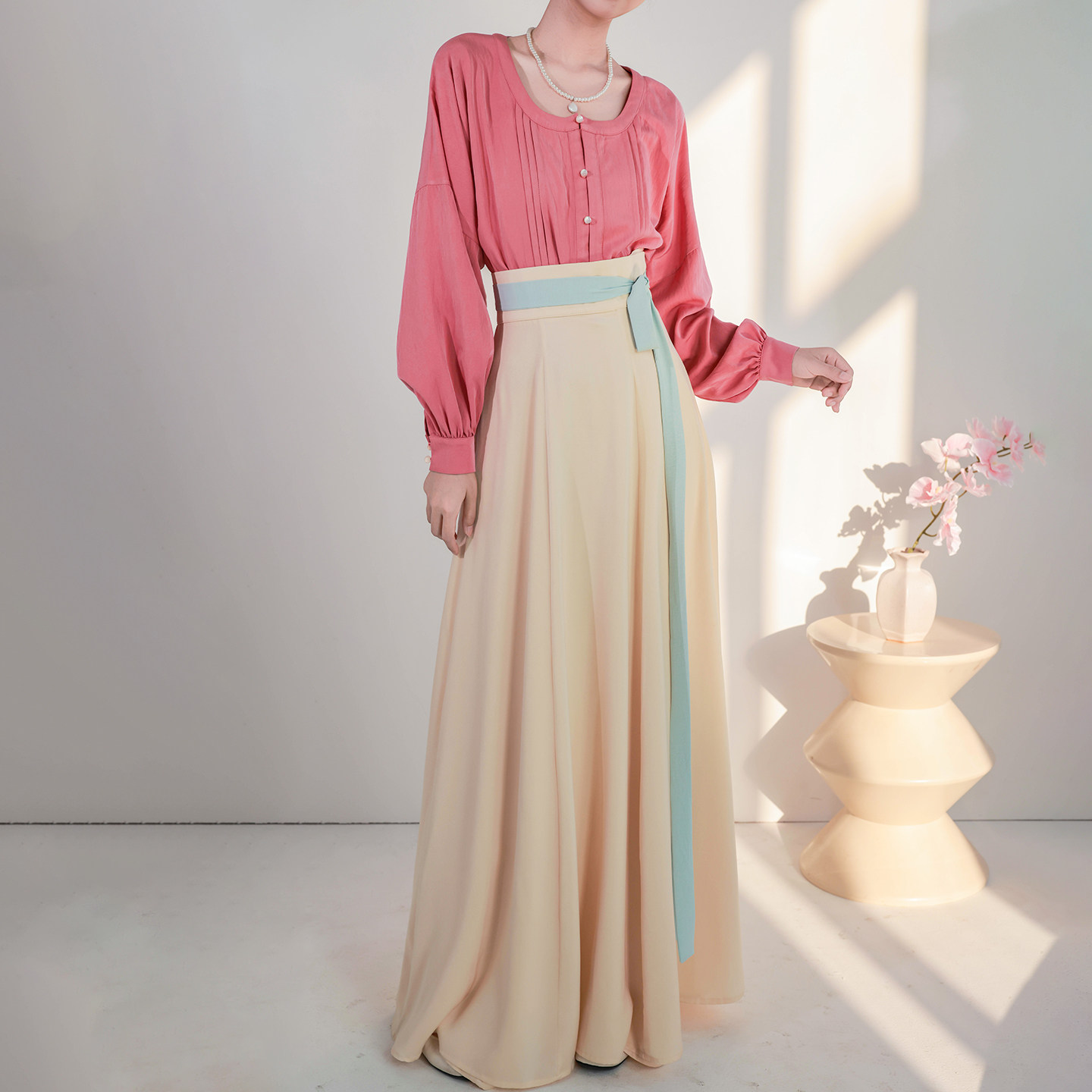 📚 拟梦秋分原创国风日常汉服多色鸡心领衬衫一片式十破裙唐风新中式