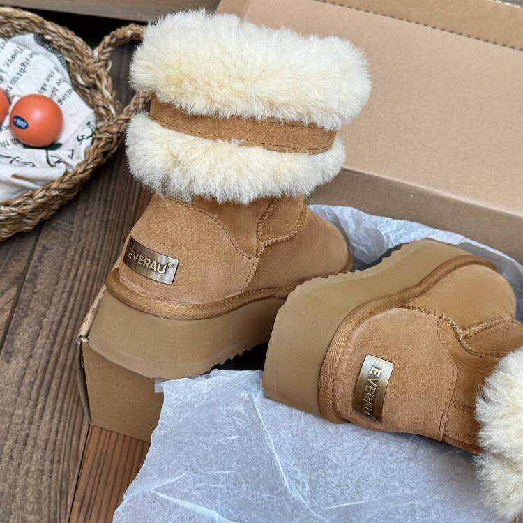 📚 澳洲EVERAU厚底雪地靴冬季加绒加厚皮毛一体东北防滑防水棉鞋3019