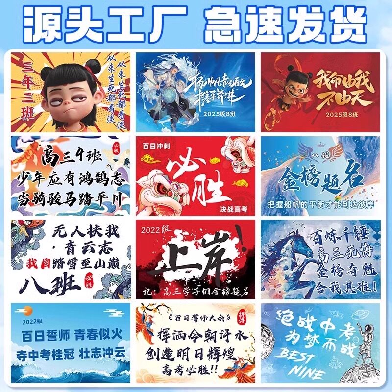 📚 百日誓师班旗定制高考班级动员大会励志标语旗帜制作中考加油必胜旗子定做印运动会哪吒队旗设计logo助威战旗