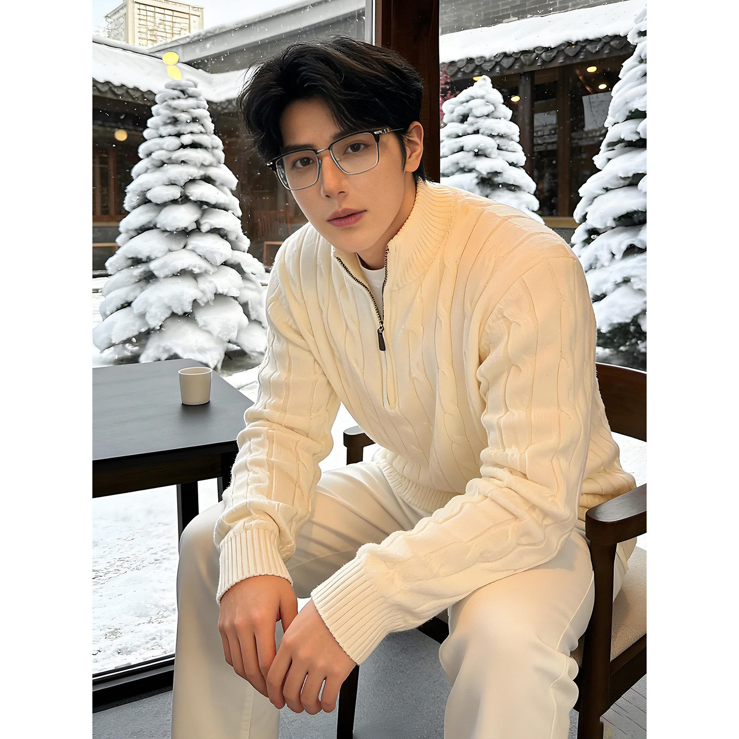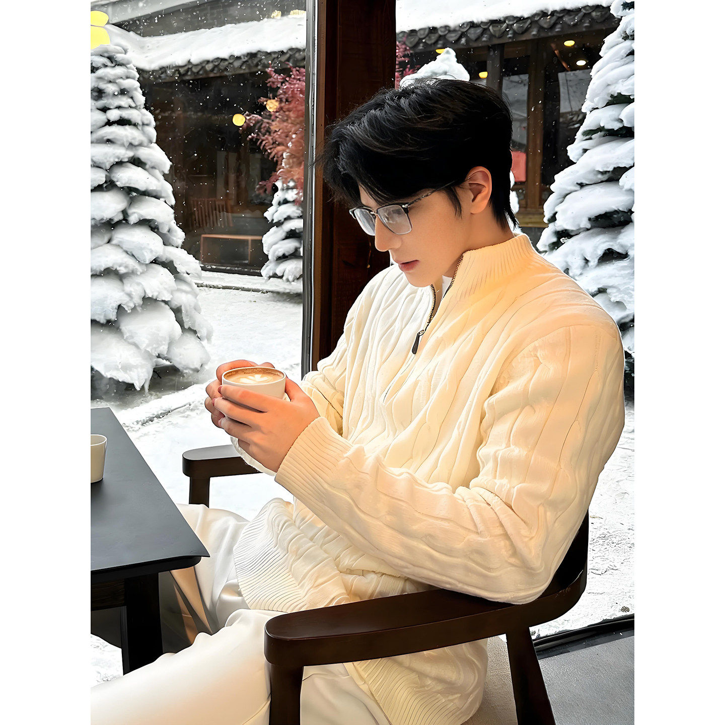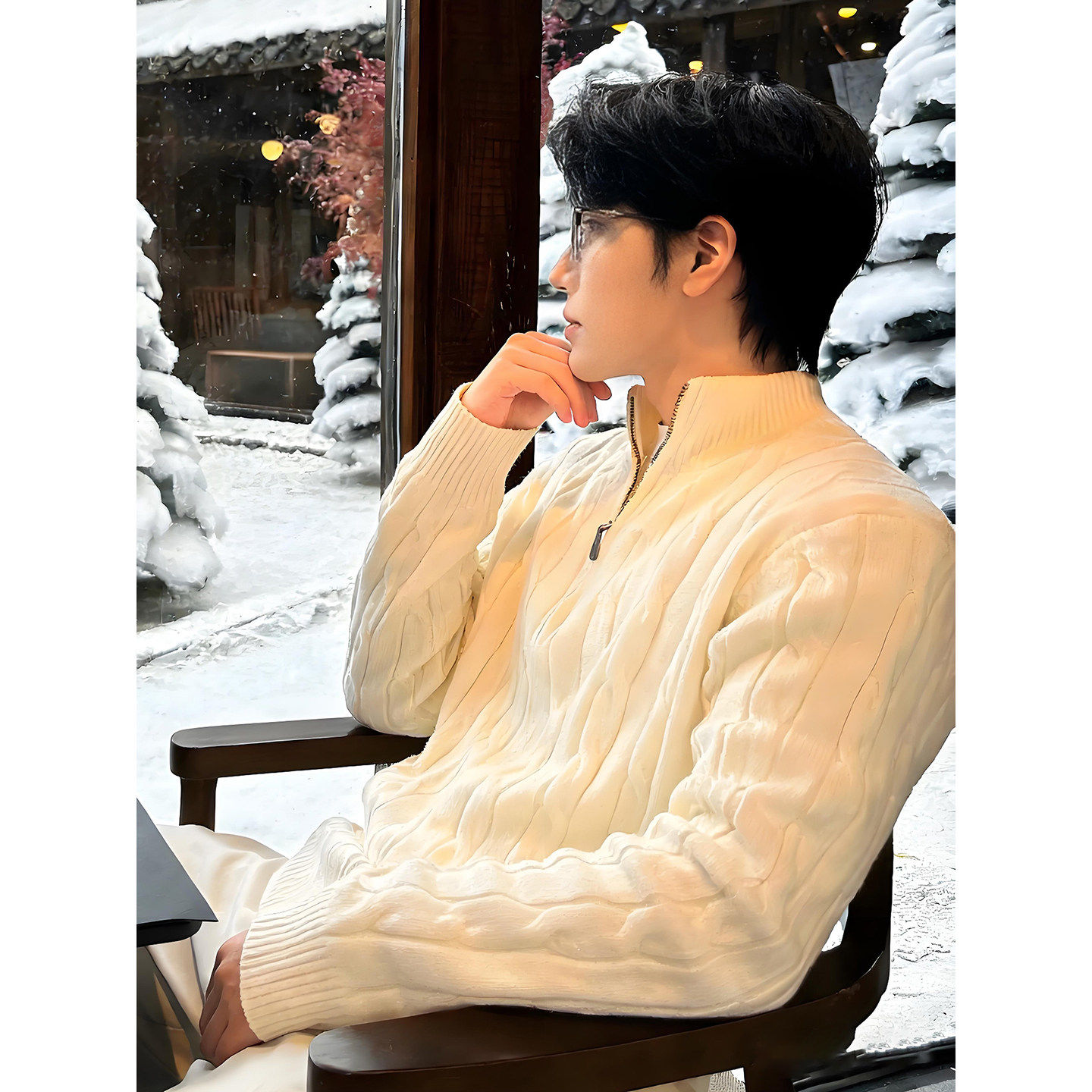 📚 麻花绞纹老钱风毛衣男款秋冬半拉链立领针织衫内搭美式复古厚外套