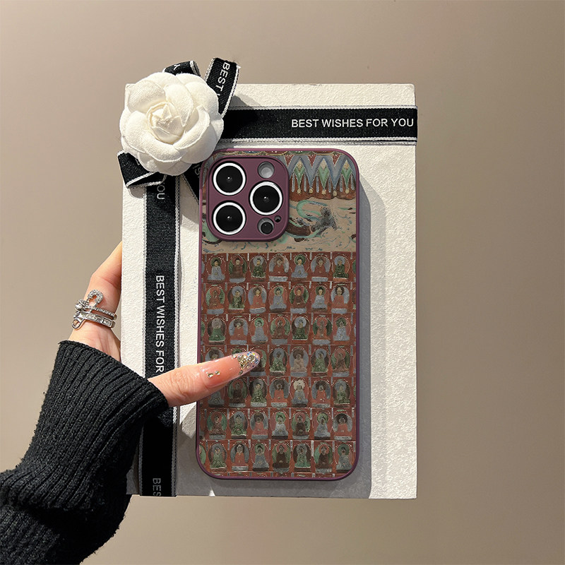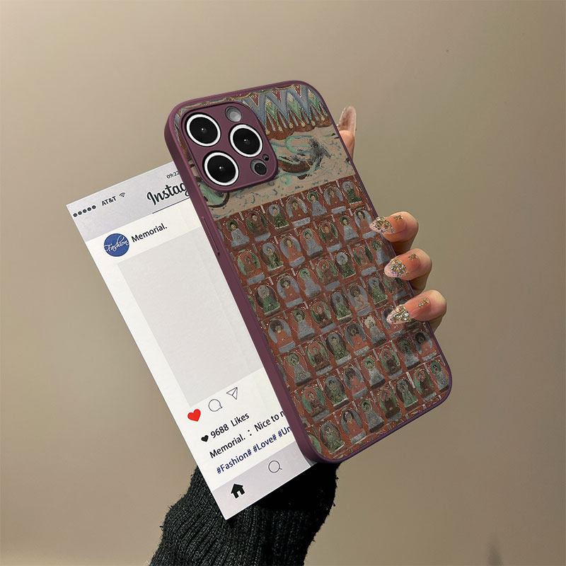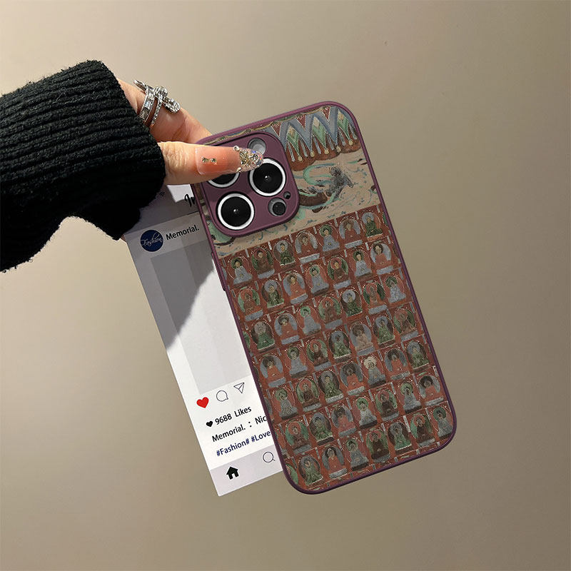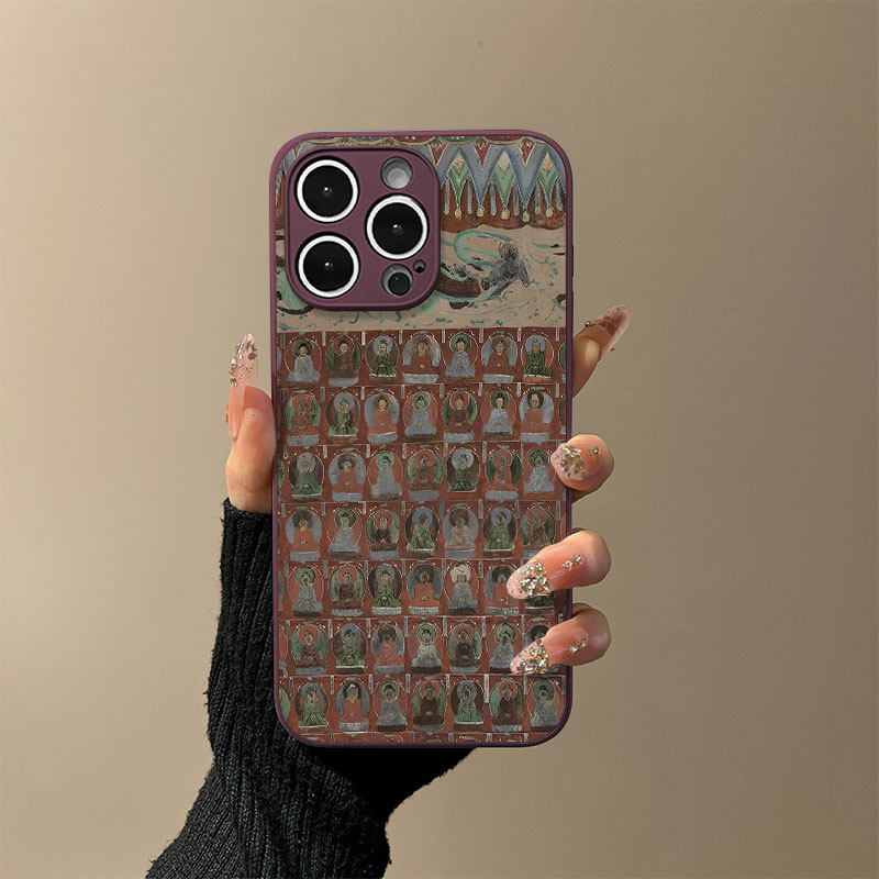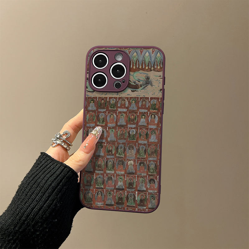 📚 「千佛·梵影」新中式适用于苹果iphone16手机壳国风15promax玻璃壳14pro敦煌风13pro壁画佛12莫高窟11高级感
