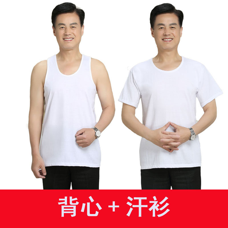 📚 中老年汗衫纯棉跨栏背心短袖T恤老头衫夏季白色宽松老人男士