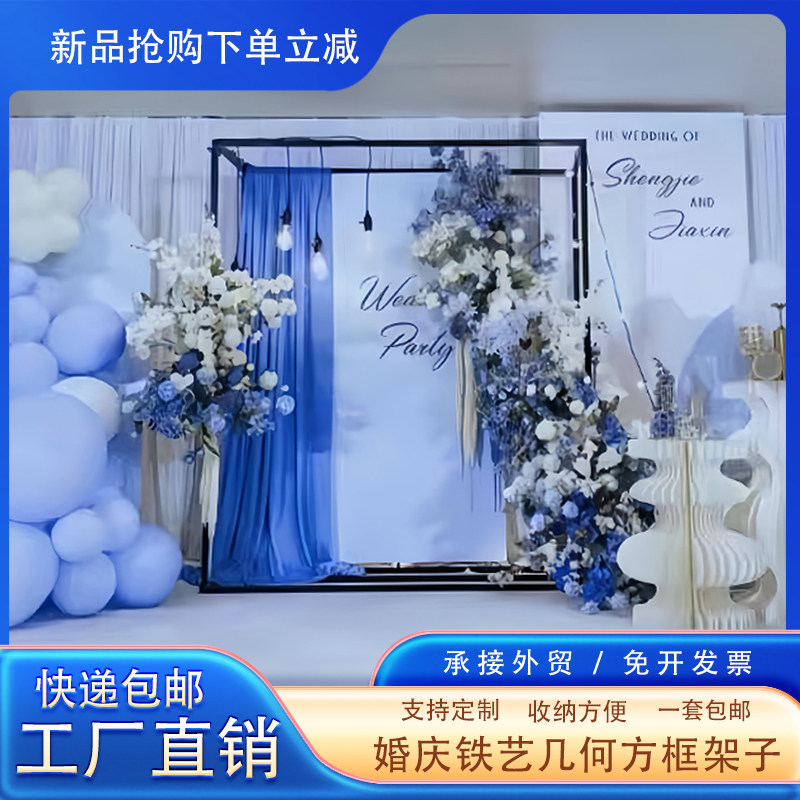📚 婚庆铁艺几何方框架子婚礼婚宝宝宴周岁活动背景挂花布幔纱幔支架