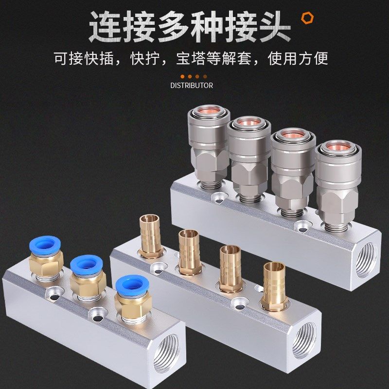 📚 气管快速接头分气l块气动多管路分气排分流器气源空压机气路分配
