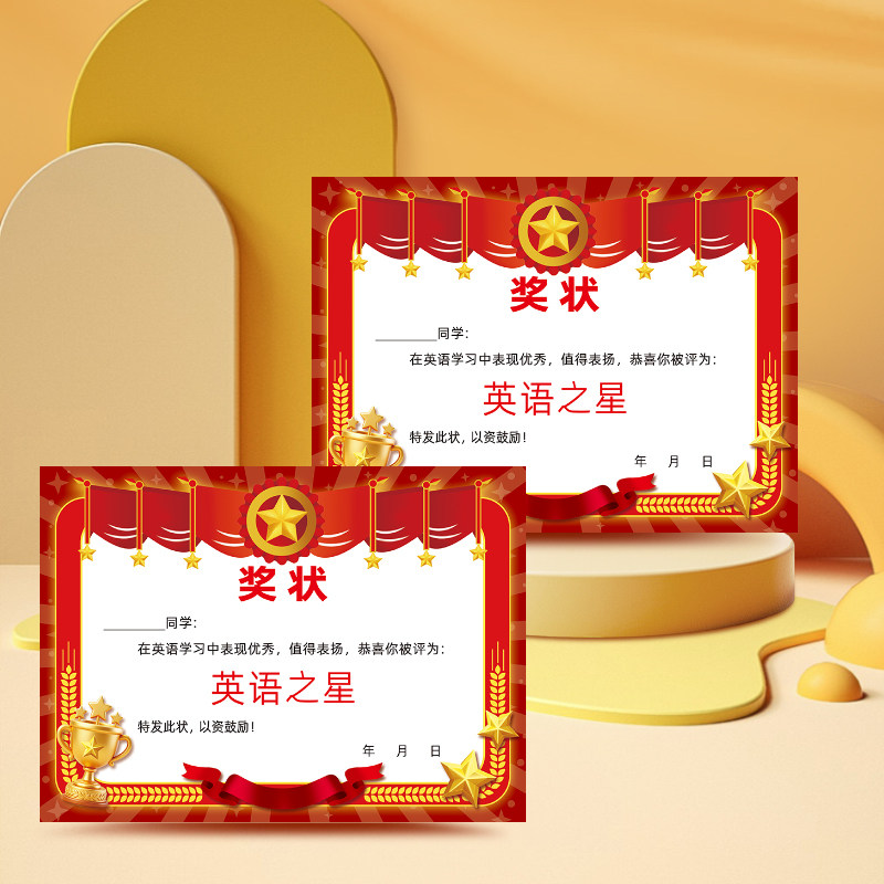 📚 表扬小学生 中学生 140克双胶纸A4奖状纸 创意语数英进步优秀之星通用奖状奖励学生多款混搭可定制