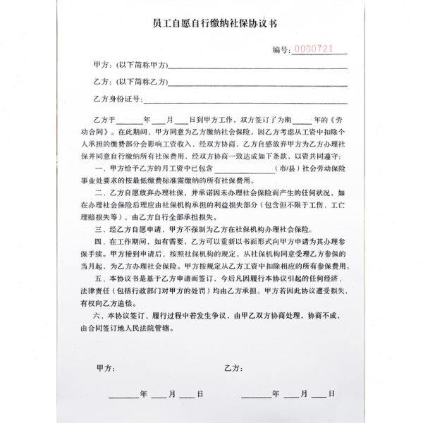 📚 协议不弃书交联二联缴纳员工合同定制行单单放社会保险保险自愿自