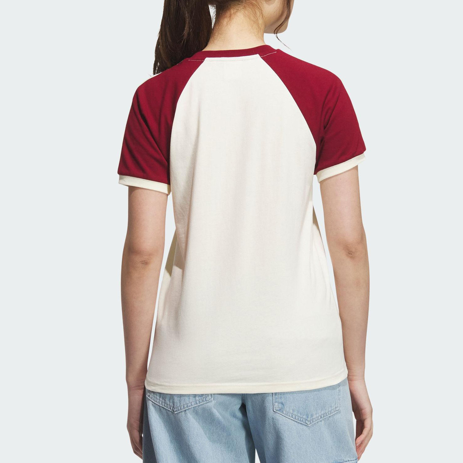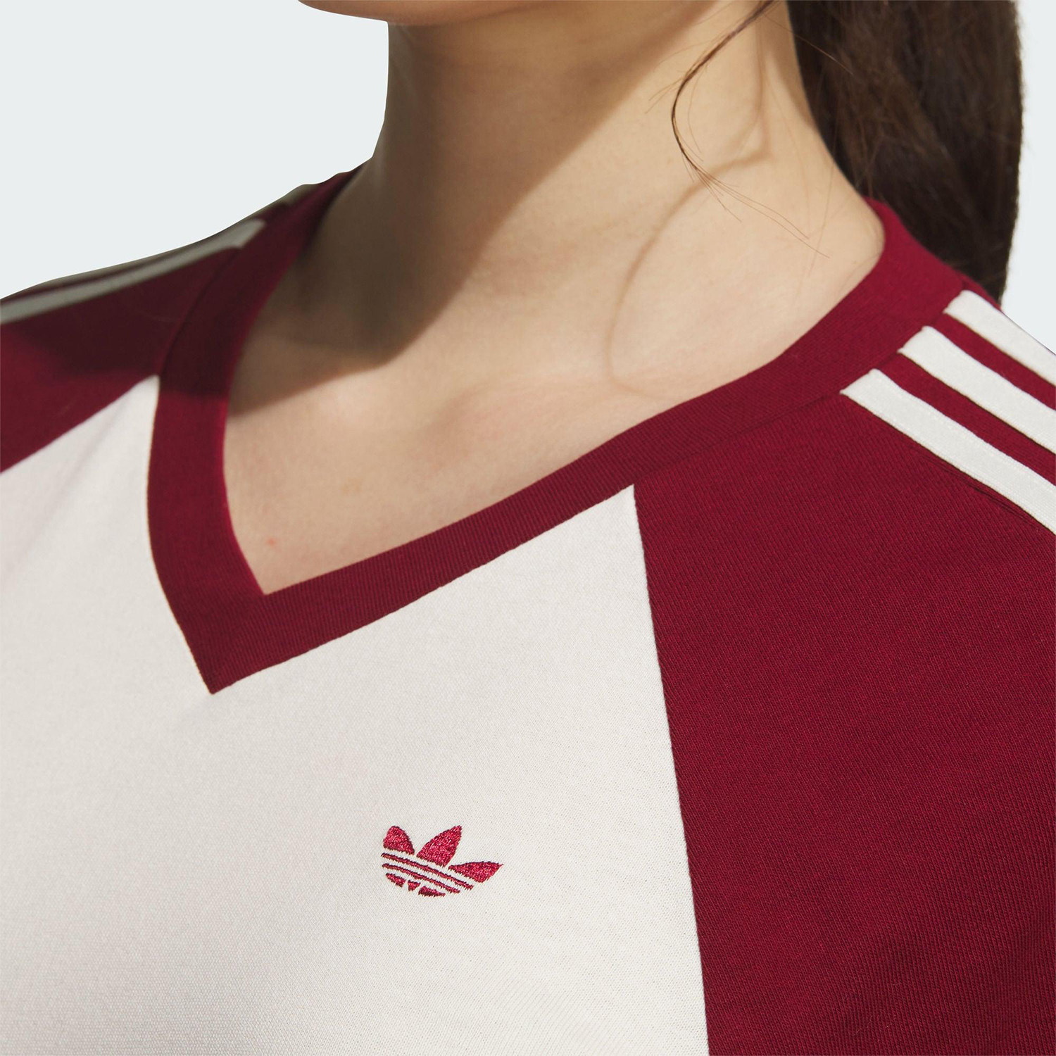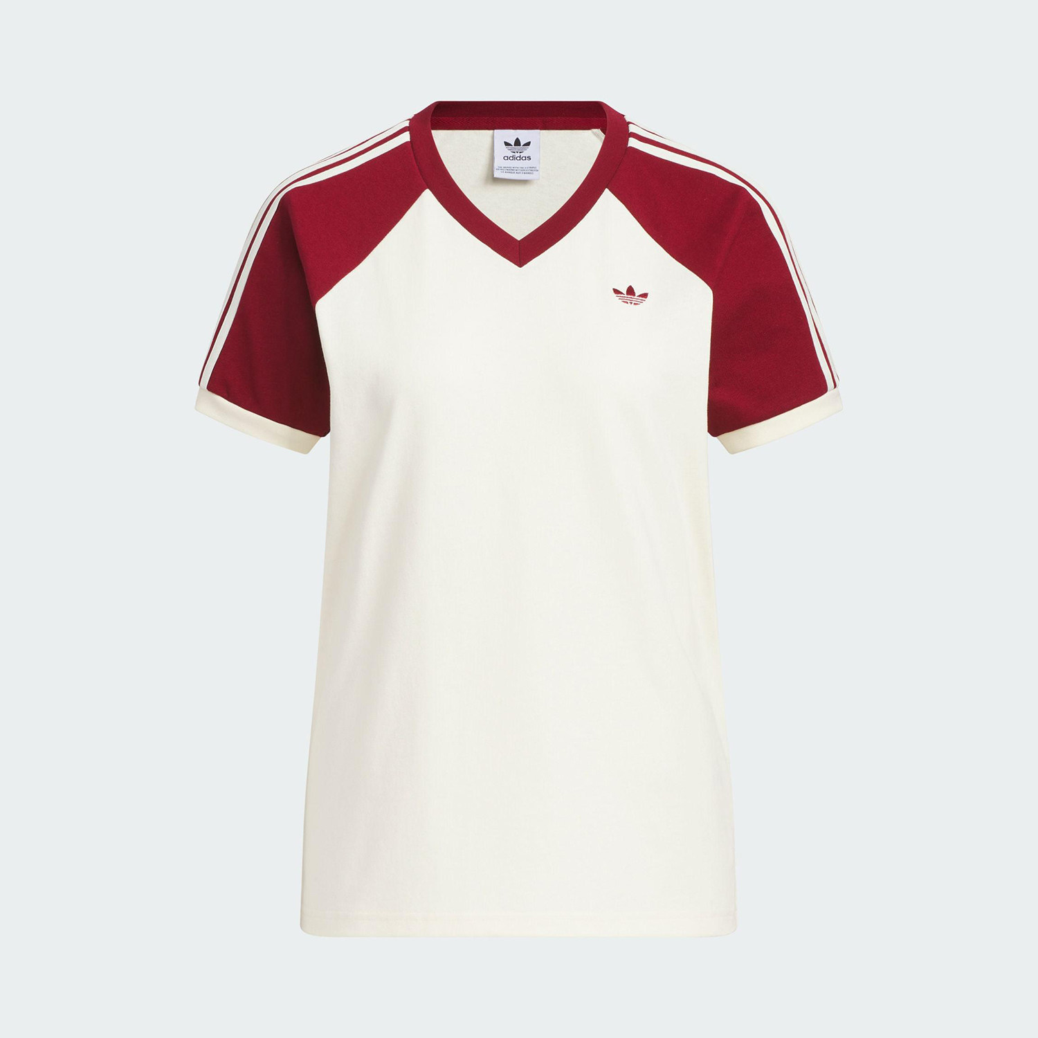 📚 Adidas/阿迪达斯官方正品三叶草女士V领透气运动拼接短袖KE6163