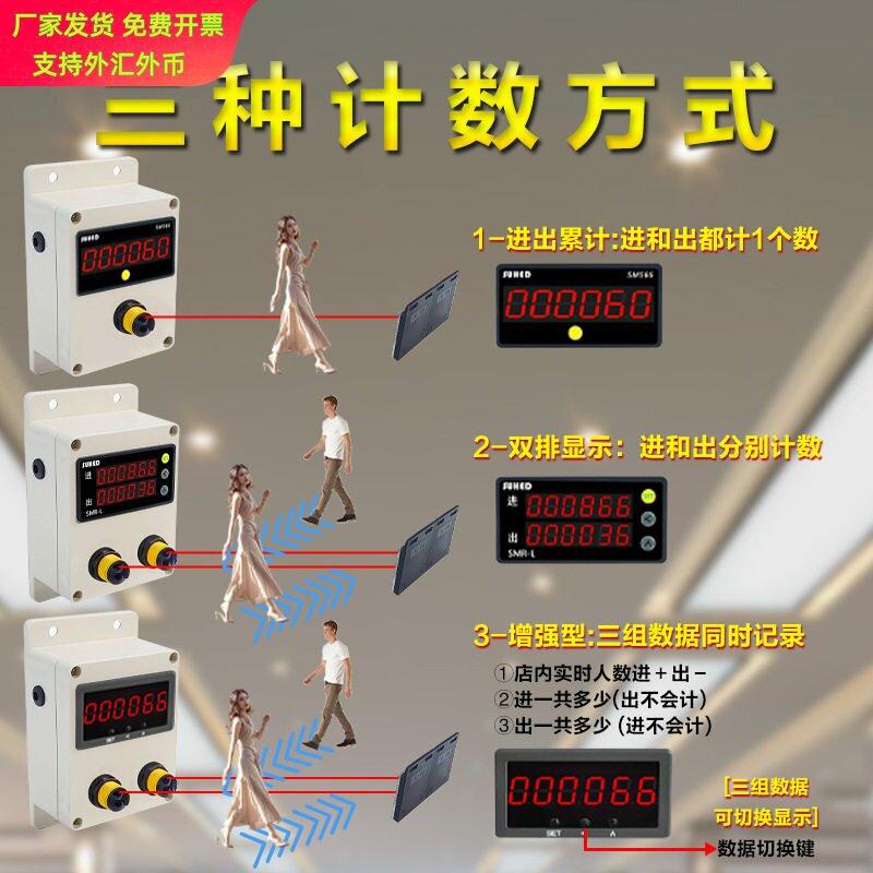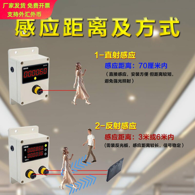 📚 人流量计数器红外线自动感应商场统计人员进出电子数显客流计数器