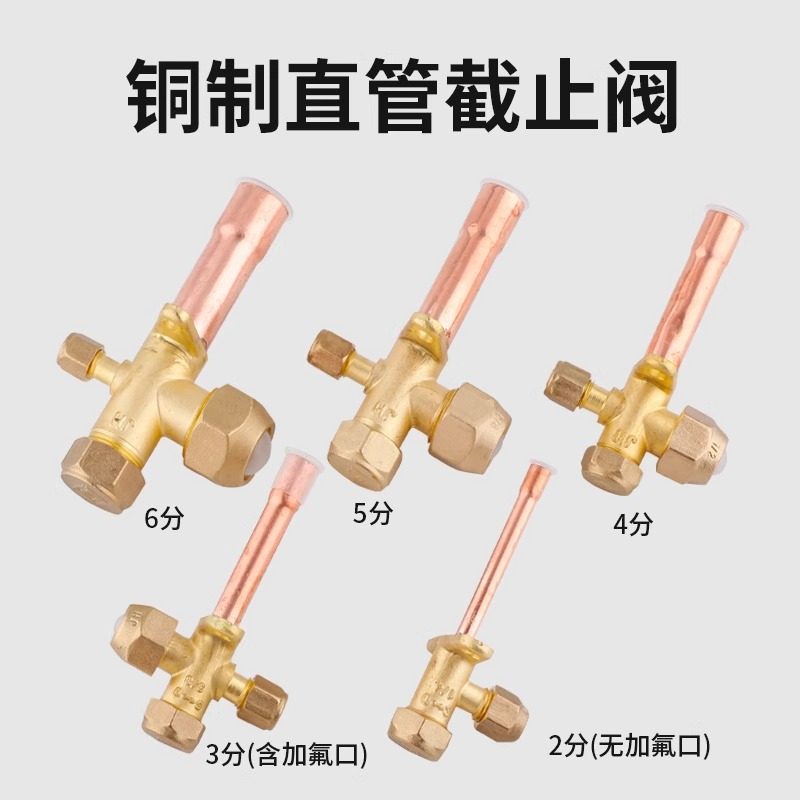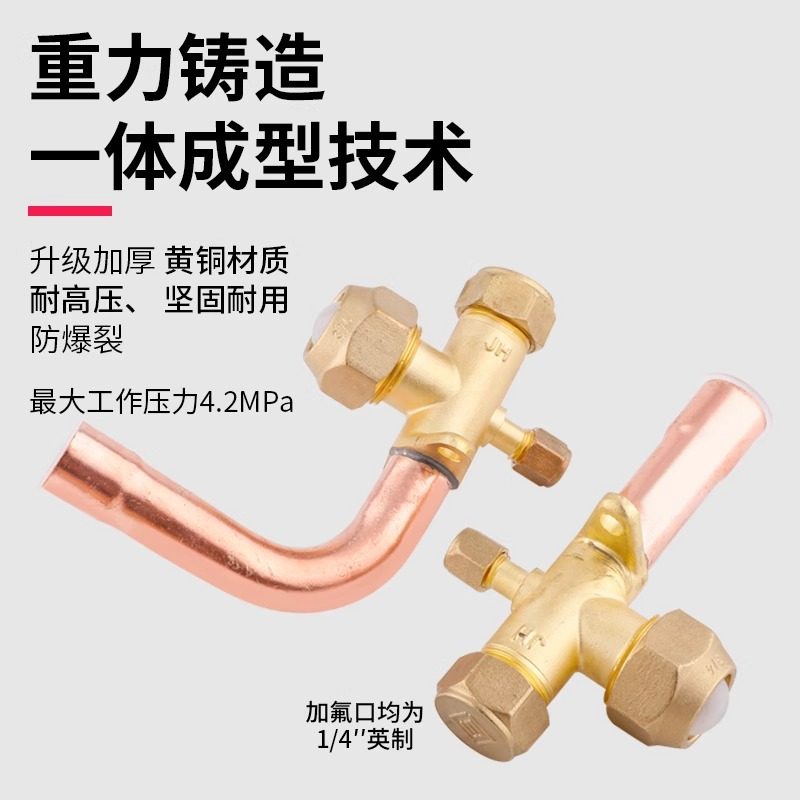 📚 空调外机加厚截止阀紫铜三通阀通用款高低压阀门加氟口制冷配件