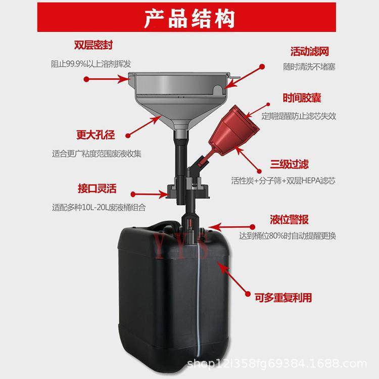 📚 实验室通风柜废液收集桶安全漏斗溶剂瓶安全收集瓶盖活性碳过滤器