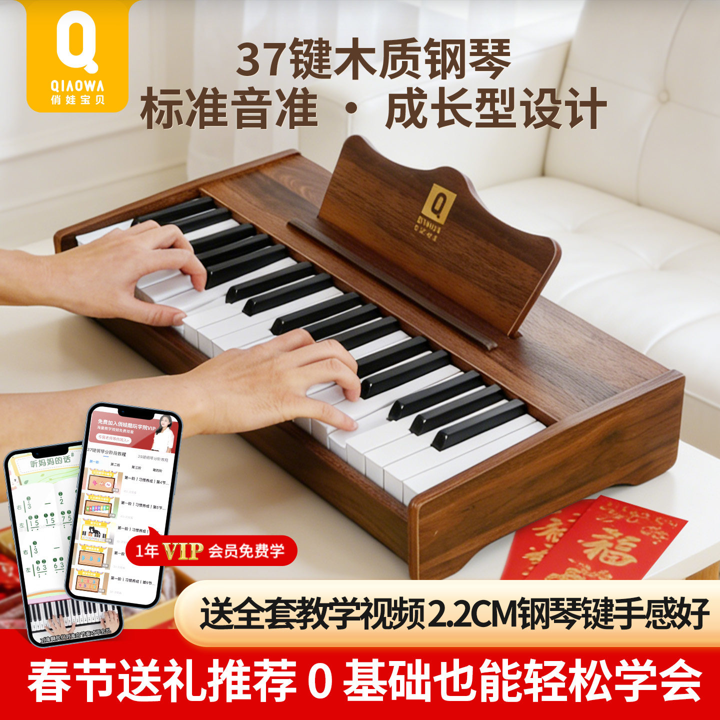📚 俏娃儿童木质钢琴电子琴初学女孩玩具宝宝乐器启蒙礼物37键入门