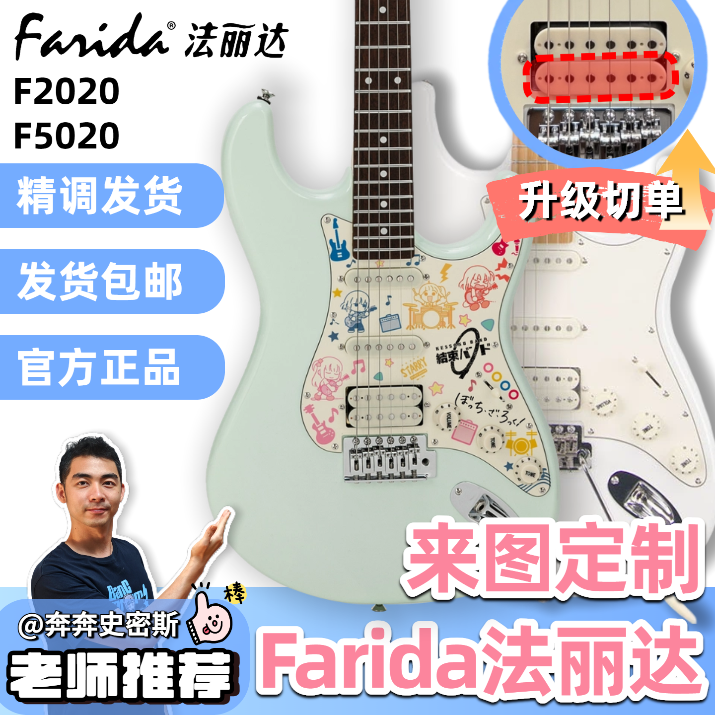 📚 奔奔老师Farida法丽达电吉他F2020 5020初学者成人通用ST电吉他