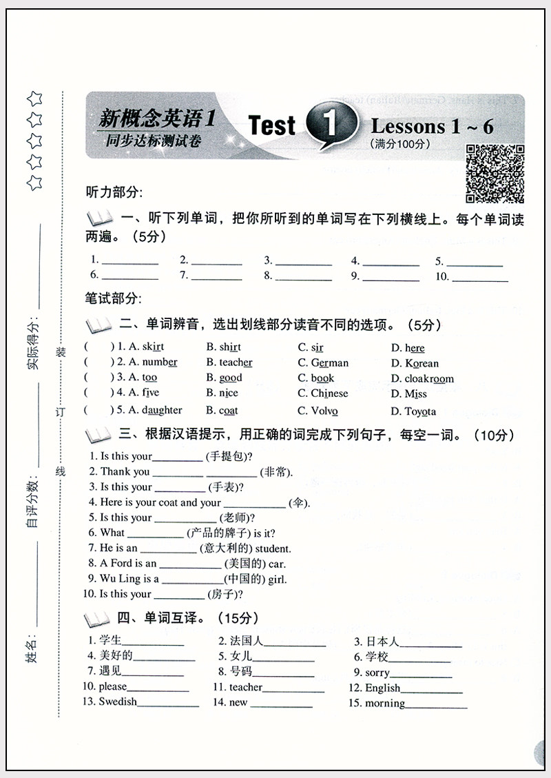 📚 团购优惠 新概念英语1 同步达标测试卷含答案 英语初阶 新概念英语一教材配套学习试卷 新概念英语配套辅导讲练测 北京教育出版社