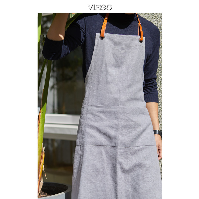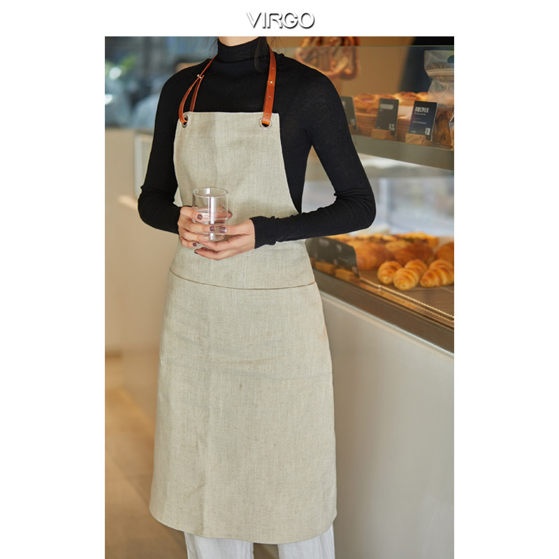 📚 virgo studio 花艺师咖啡师美容美甲餐厅棉麻简约日式围裙定制log