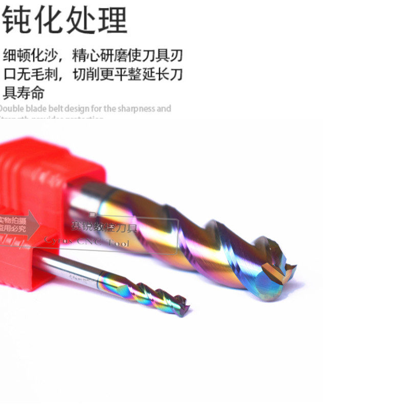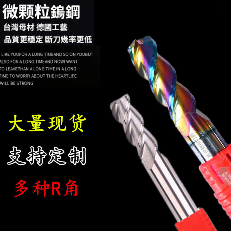 📚 钨钢圆鼻刀铝用牛鼻刀3刃高光R角立铣刀加长DLC七彩涂层数控刀具