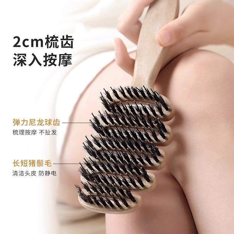 📚 松塔猪鬃护发梳发顶蓬松神器按摩头部顺发排骨梳网红梳子女士专用