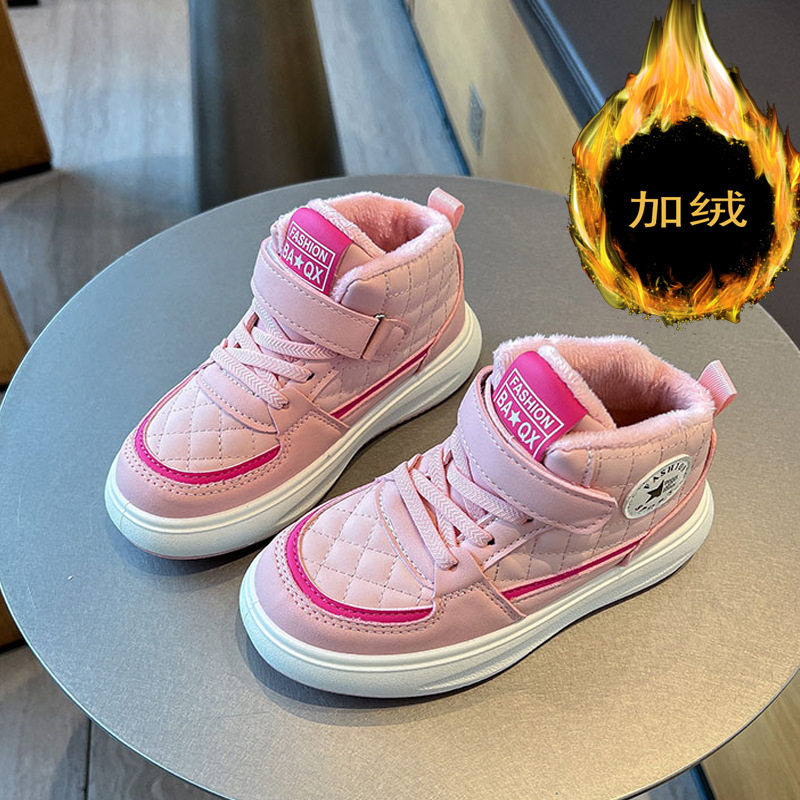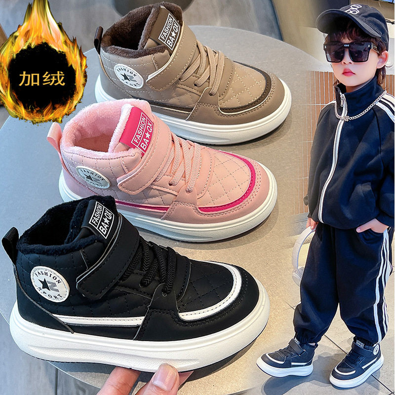 📚 儿童加绒板鞋秋冬新款男童时尚休闲鞋女童高帮加棉鞋学生潮鞋