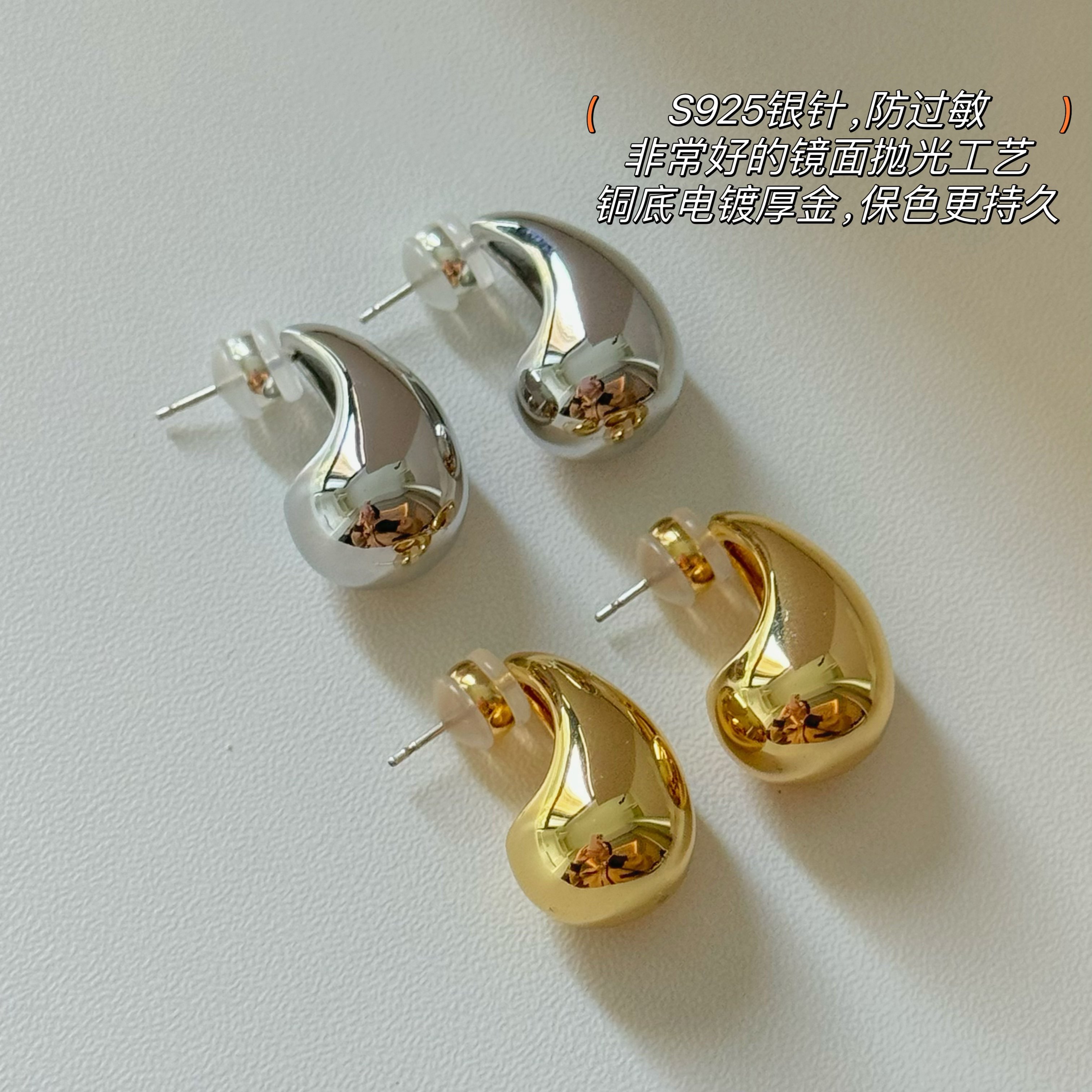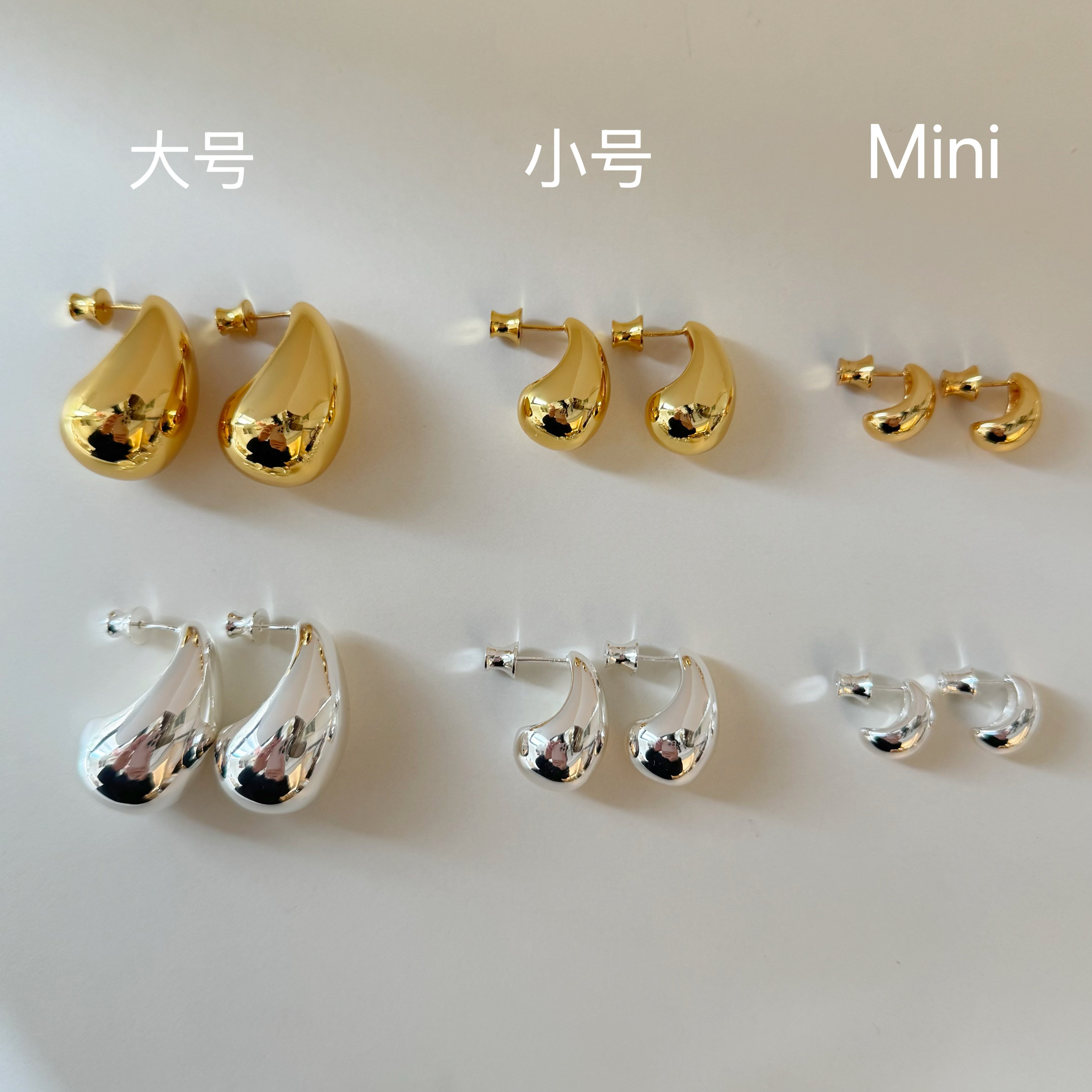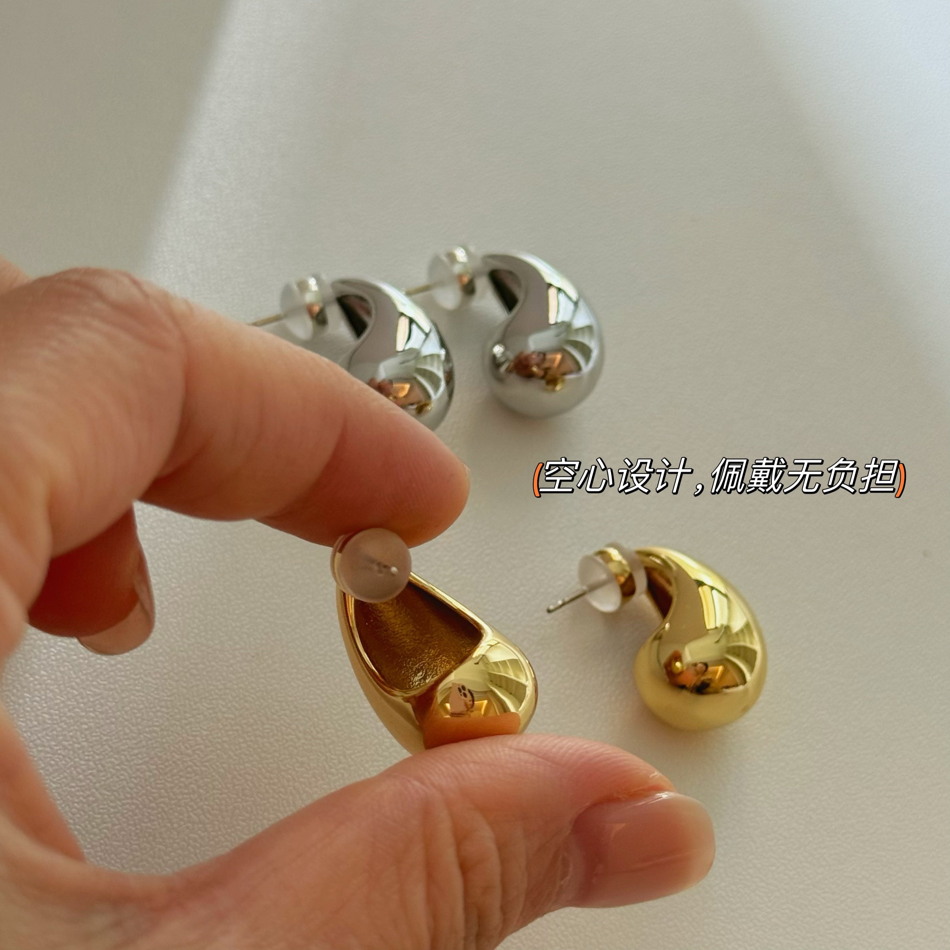 📚 小众时髦感水滴形耳环欧美极简金属耳饰高级感气质冷淡风银色耳钉
