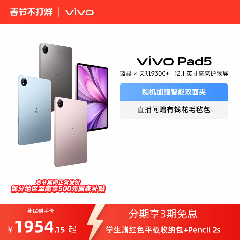 📚 【直播间抢红包 国补至高15% 】vivo Pad5平板电脑新款天玑9300+学生官方正品12.1英寸天猫校园