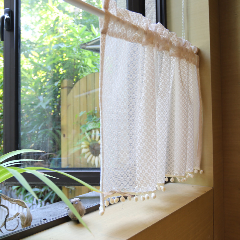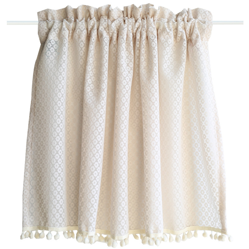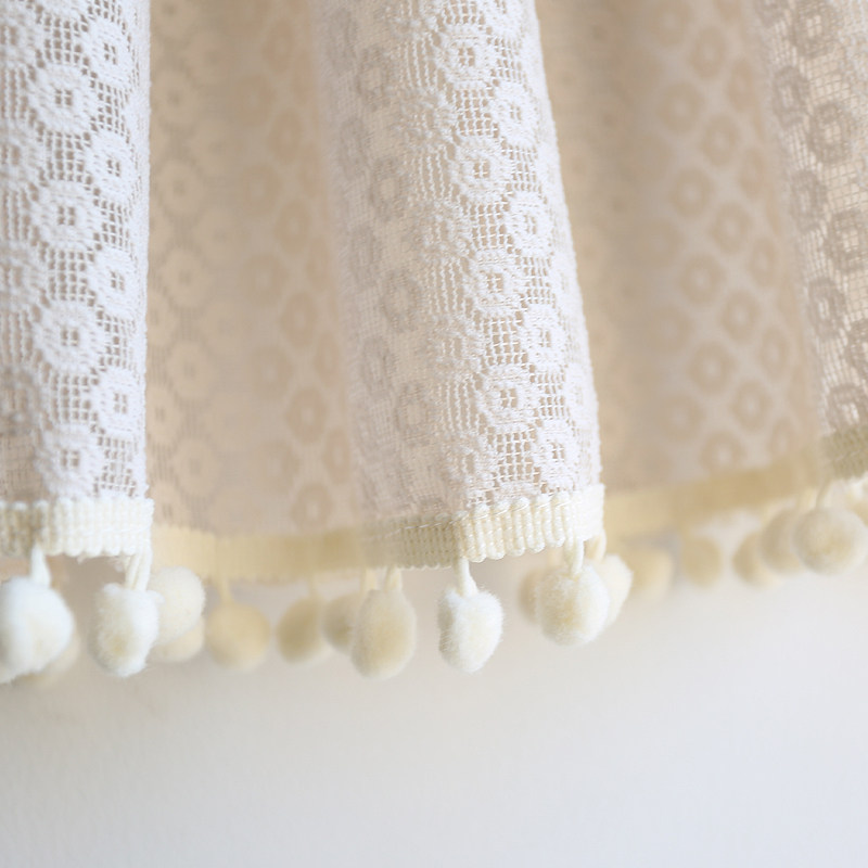 📚 鸢尾乡旅米色缕空圆点美式穿杆柜门帘纯色半帘帘头短帘免打孔帘