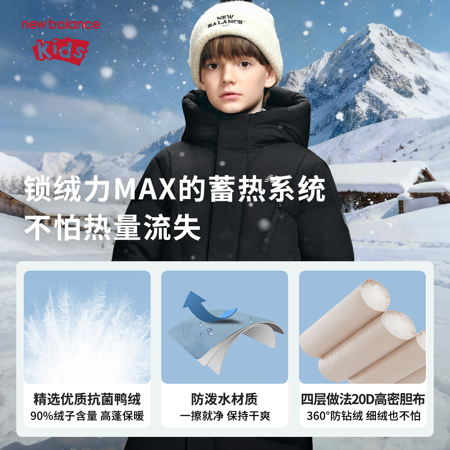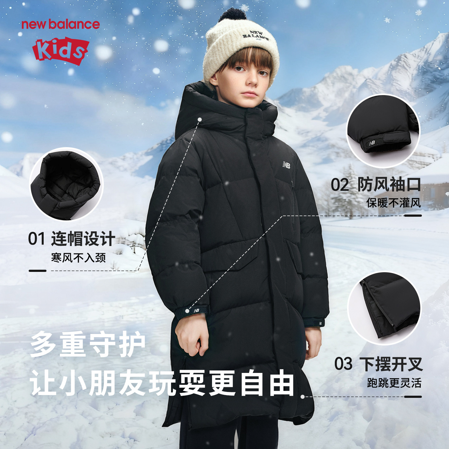 📚 【90绒】New Balance nb童装儿童男女冬长款保暖羽绒服ND7PF4Z173