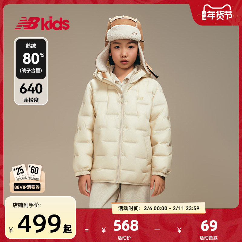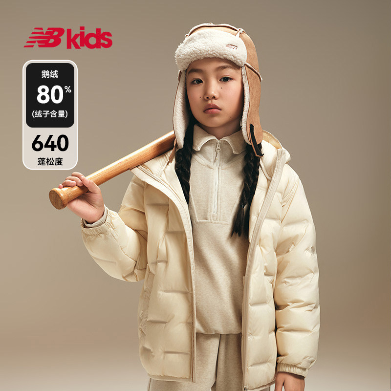 📚 【鹅绒 80%绒子含量】nb官方童装 冬季纯色新品连帽轻薄款羽绒服