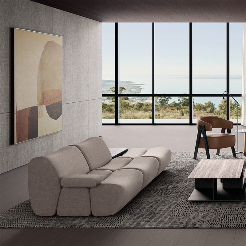 📚 艾尚卡菲意式Poliform竹节Ernest客厅别墅大平层弧形模块真皮沙发