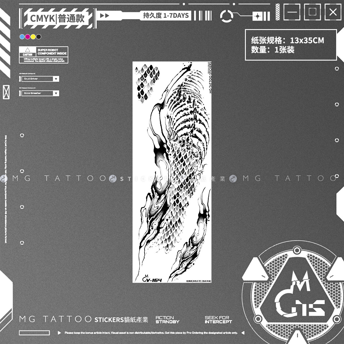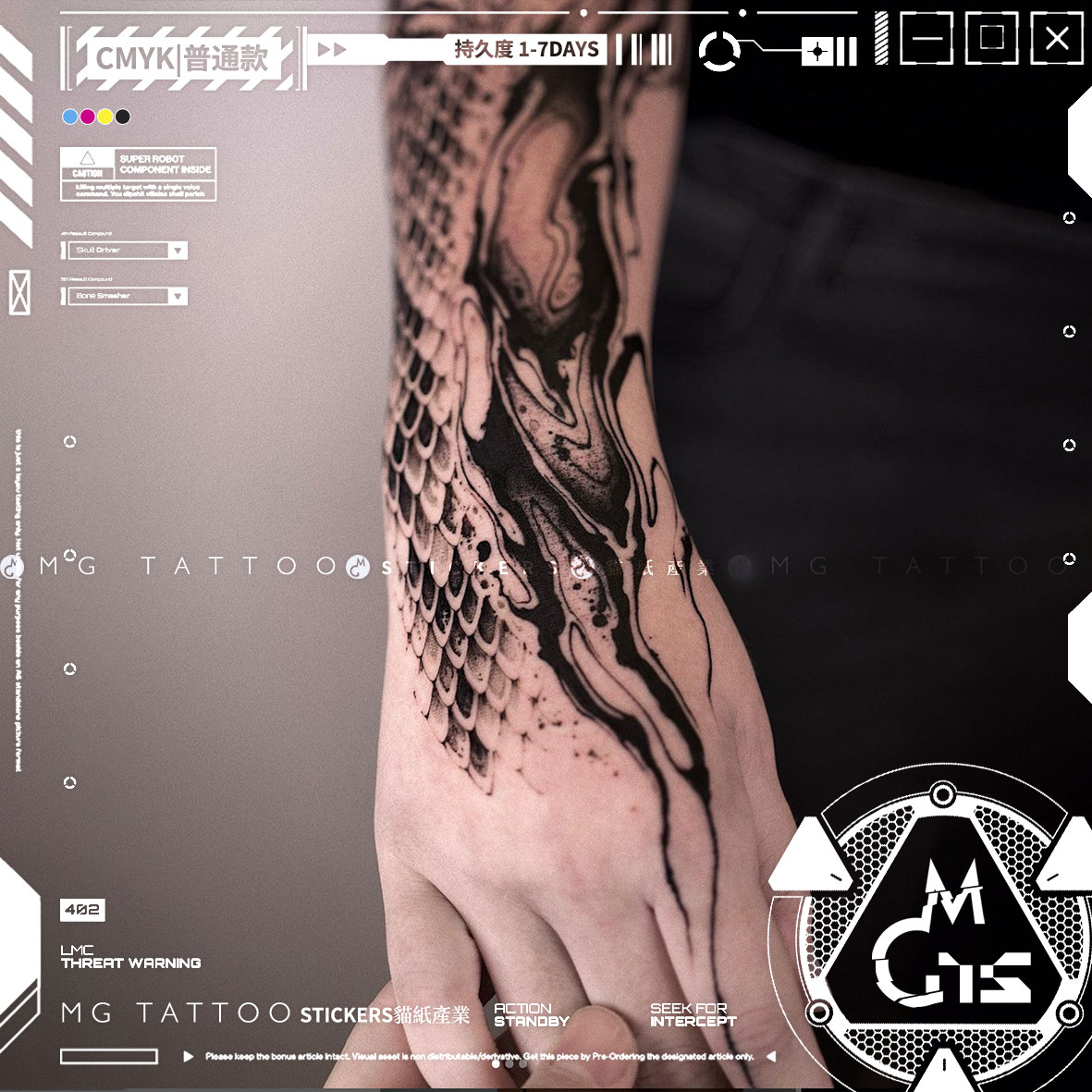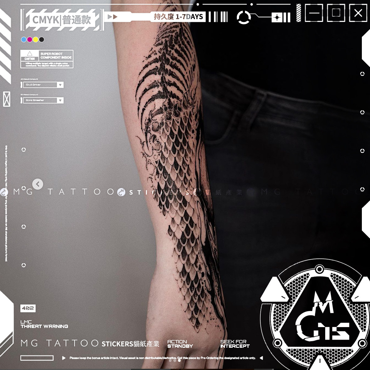 📚 MG tattoo 消亡蜕变 暗黑系蛇骨蛇皮鳞片花臂酷炫男女纹身贴纸潮