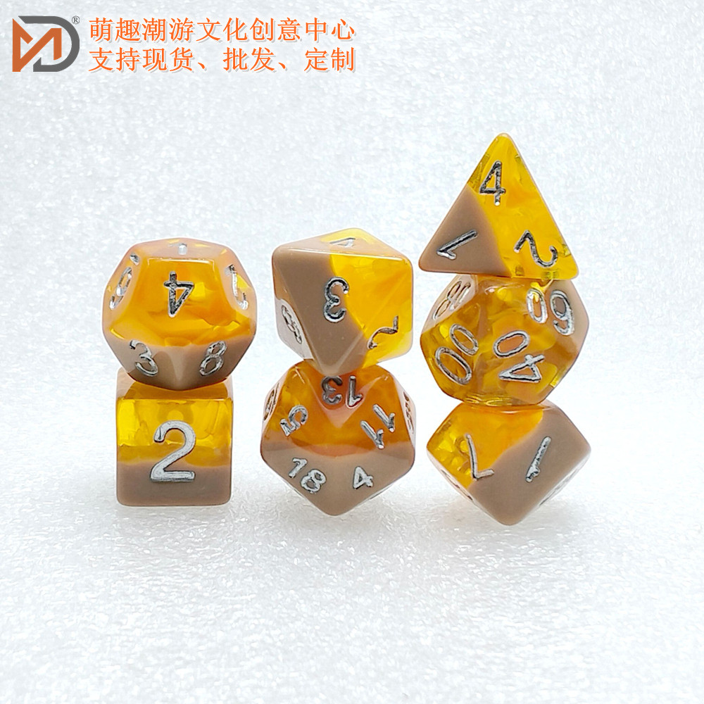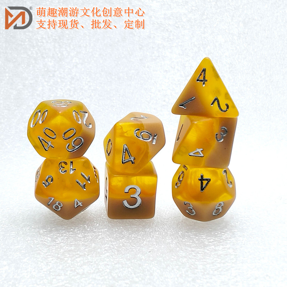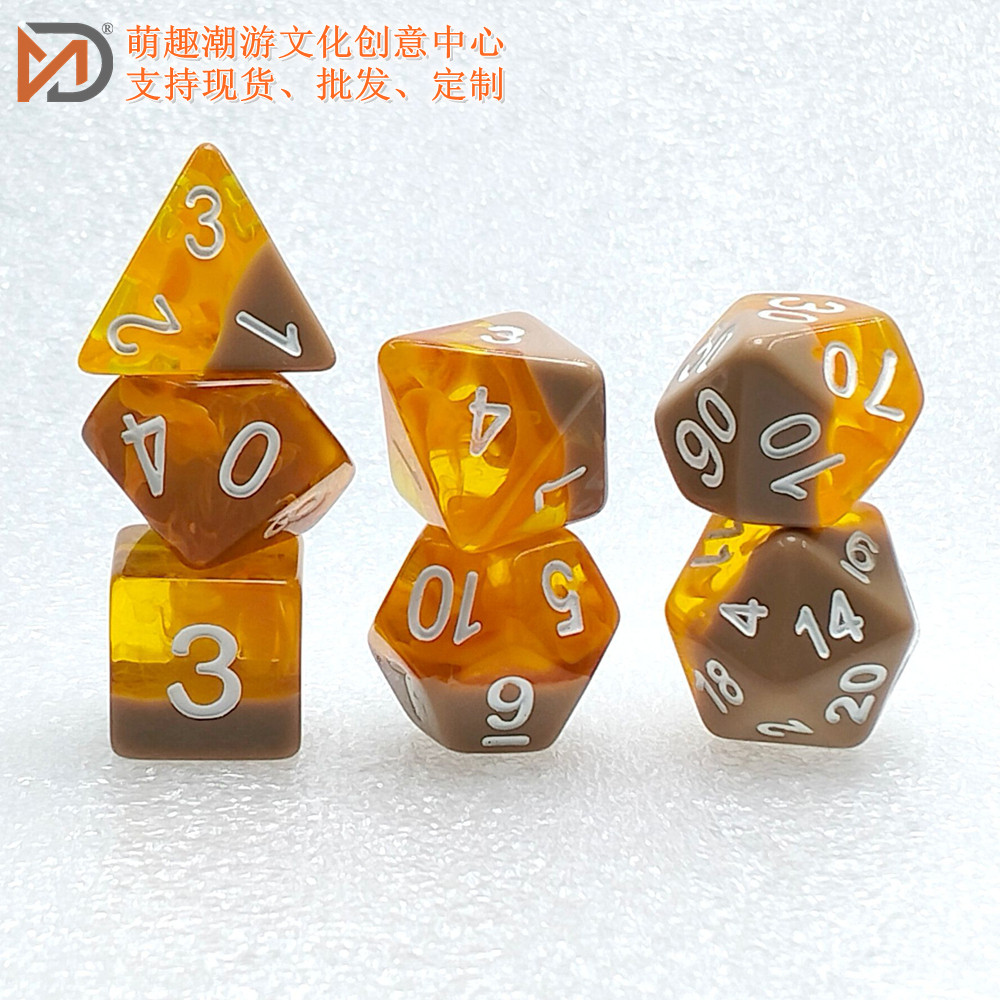 📚 橙色树脂套装骰子桌游龙与地下城COC跑团TRPG克苏鲁多面体七件套