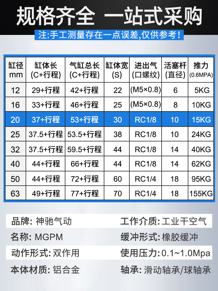 📚 SNS神驰MGPM薄型带导杆气缸40X10 20 30 40 50 75 100 125 150