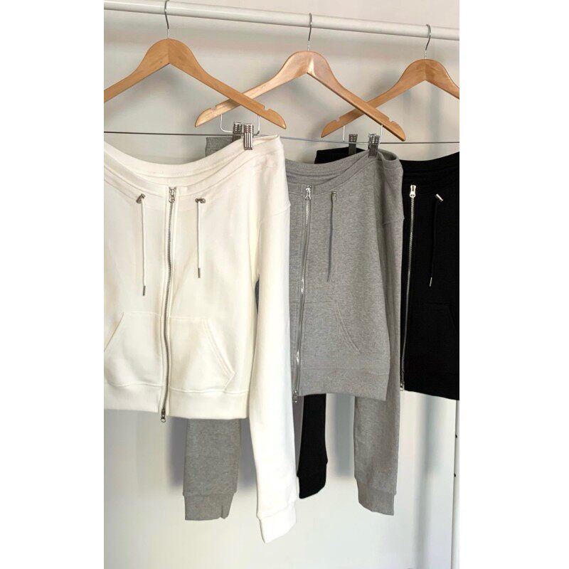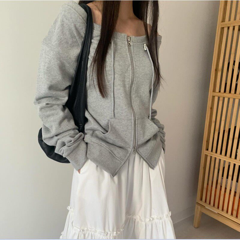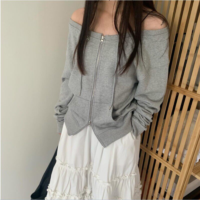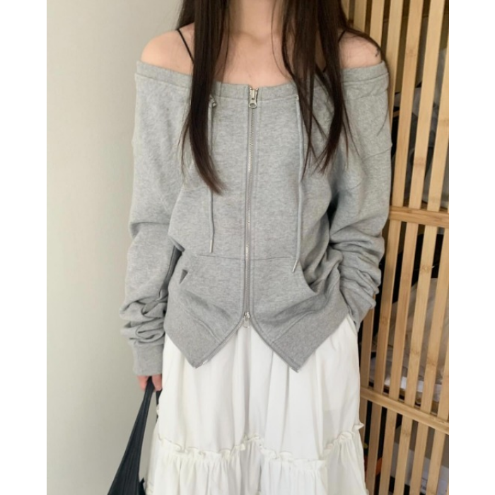 📚 直邮 韩国官网代购女装hippiedippy 2025春 时尚性感拉链露肩卫衣