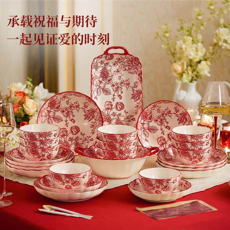 📚 陪嫁结婚碗筷套装碗碟套装家用结婚礼物乔迁之喜入宅碗餐具套组
