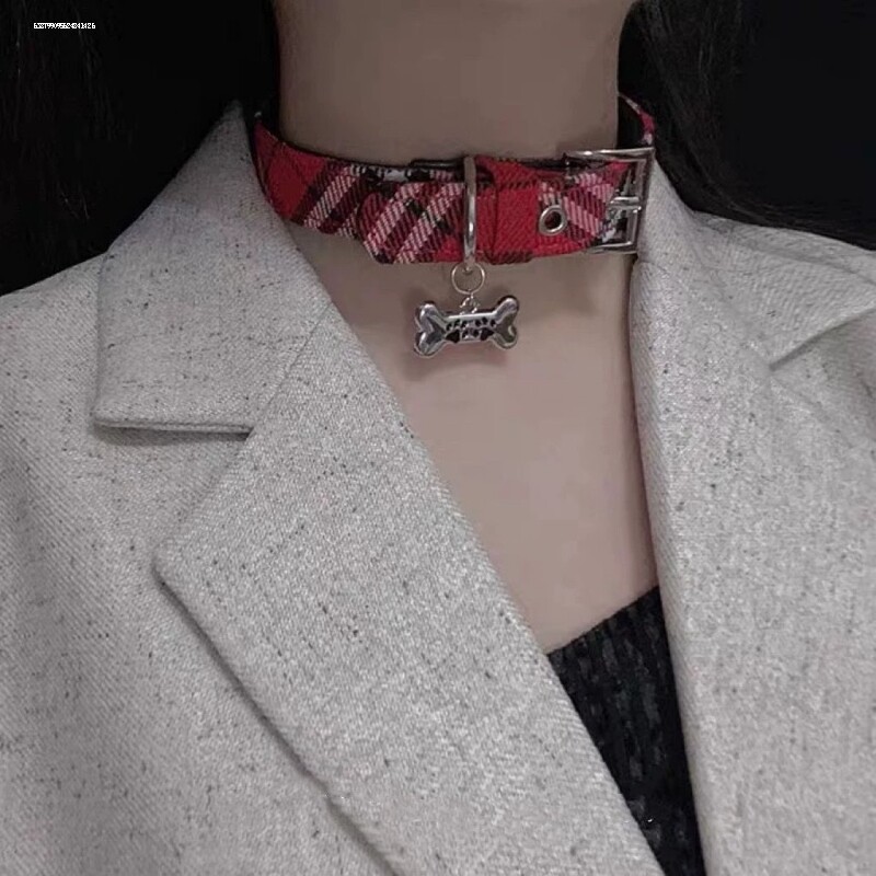 📚 Y2K千禧甜酷辣妹项圈粉色小狗骨头项链女小众亚文化choker颈链